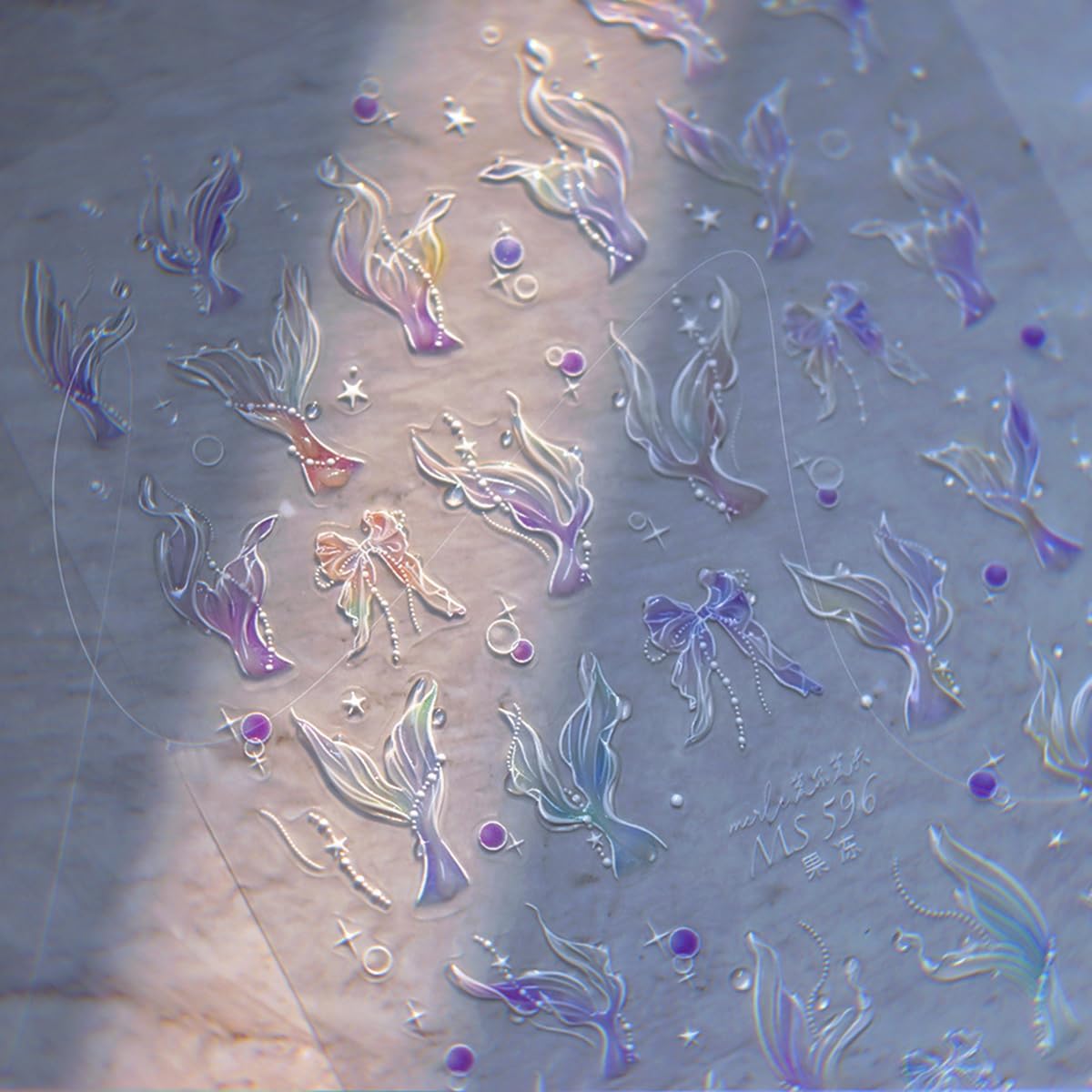 - Mermaid Nail Decals: 1 sheets of 5D Embossed mermaid nail stickers give people an intuitive and advanced exquisite feeling. spring summer design nail decals are perfect for decorations for your false nails.that will make your fake nails more realistic and interesting!