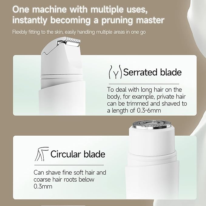 - ✨ Two in one multifunctionality allows you to bid farewell to device anxiety. One head is a body shaver, perfect for the arms, legs, bikini area, or other body parts, while the other head is a facial shaver head, used to remove hair from the cheeks, chin, and upper lip.
