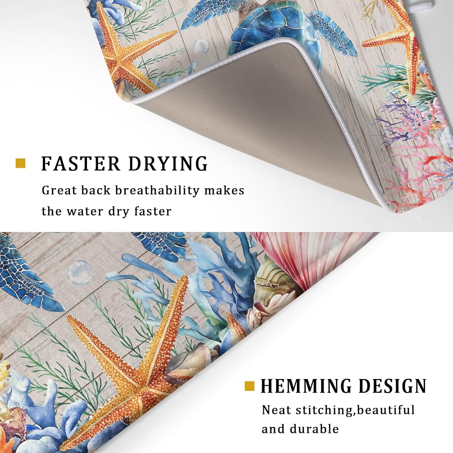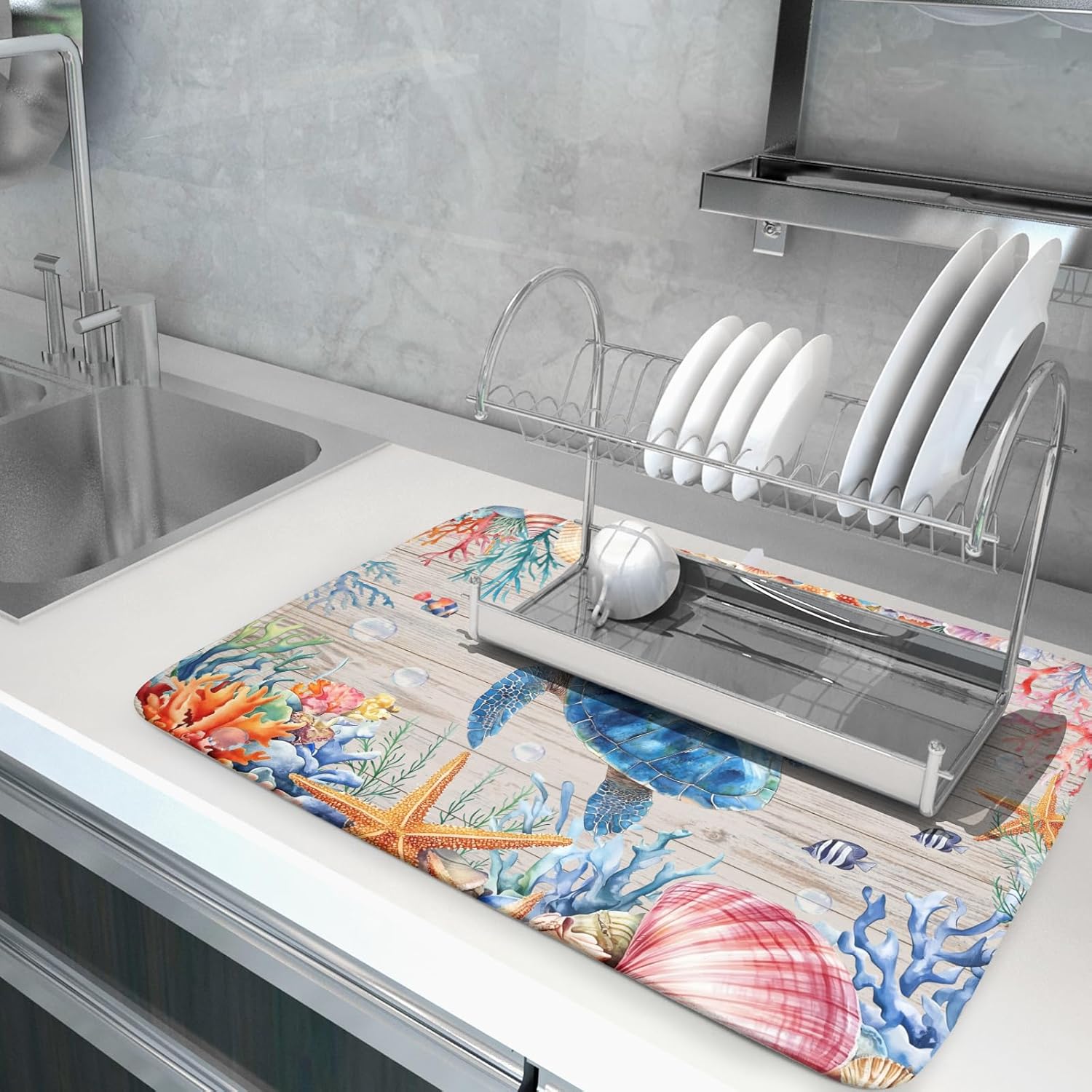 Sea Turtle Dish Drying Mat 18x24 inch Tropical Ocean Fast Dry Absorbent Microfiber Dishes Drainer Rack Pad for Countertop Bar Table Decor