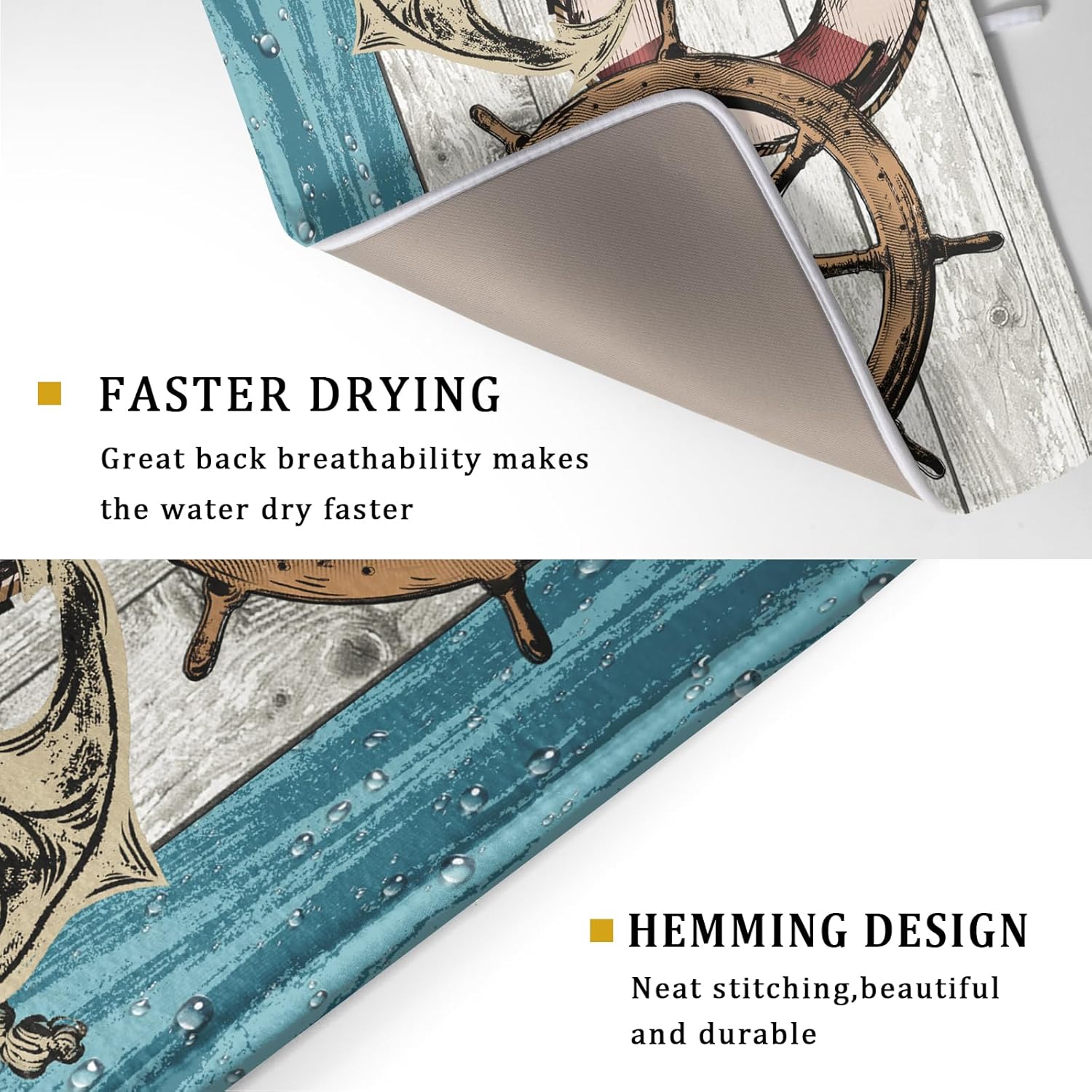 Nautical Anchor Dish Drying Mat 18x24 inch Coastal Boat Fast Dry Microfiber Reversible Dish Drainer Pad Kitchen Countertop Tabletop Decor