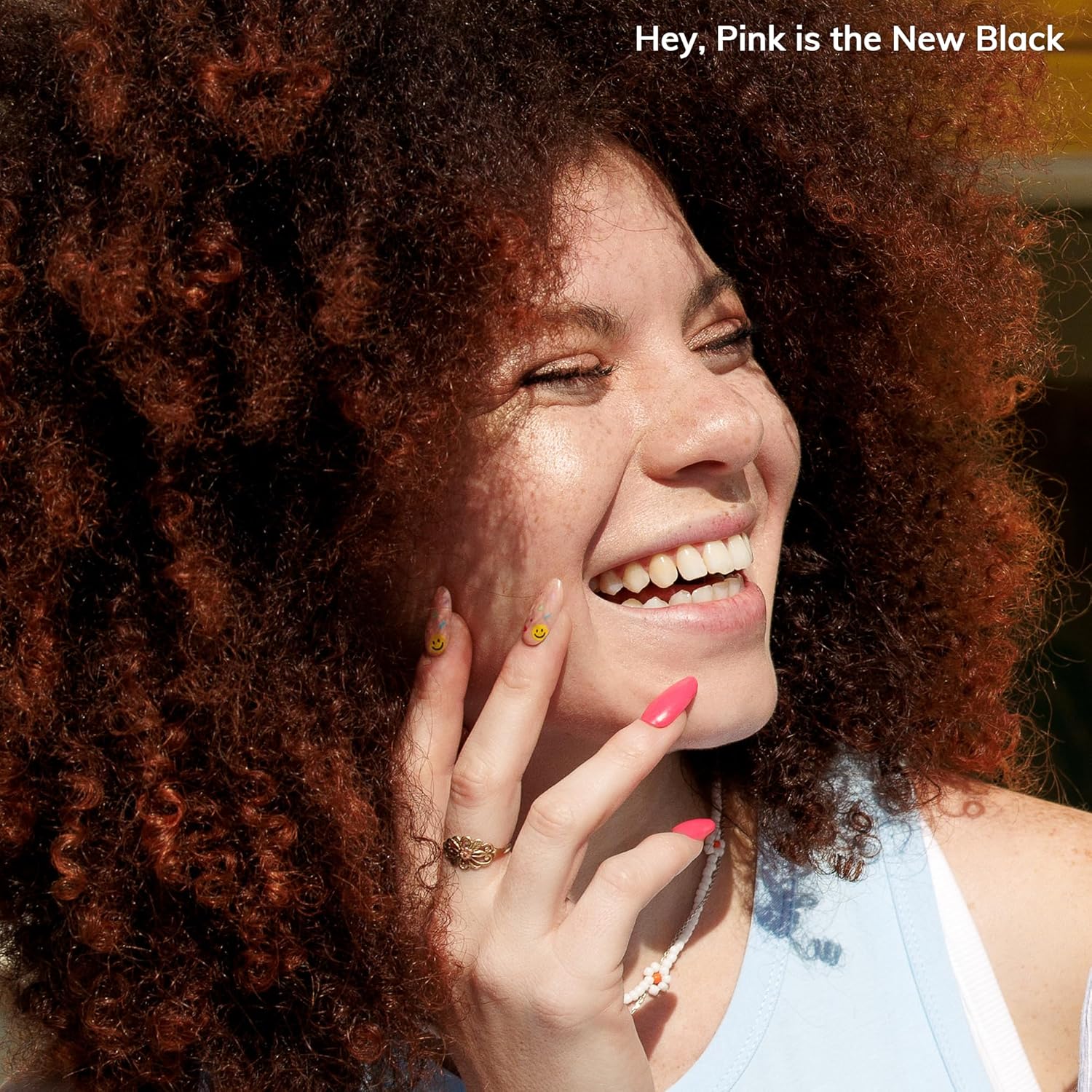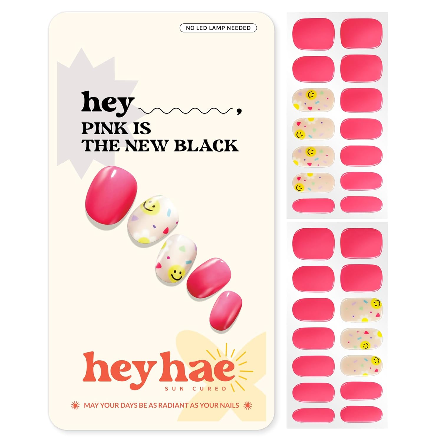 Semi Cured Gel Nail Strips | No LED Lamp Needed | Spring, Marble, Pink | Easy Apply & Remove,Salon Quality |Includes 28 Strips, 1 Prep Pads, Nail File & Wooden stick- Hey, Pink is the New Black