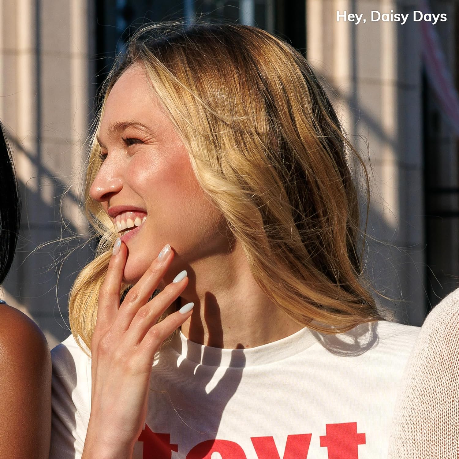Semi Cured Gel Nail Strips | No LED Lamp Needed | Spring, Marble, Pink | Easy Apply & Remove, Salon Quality | Includes 28 Strips, 1 Prep Pads, Nail File & Wooden stick - Hey, Daisy Days