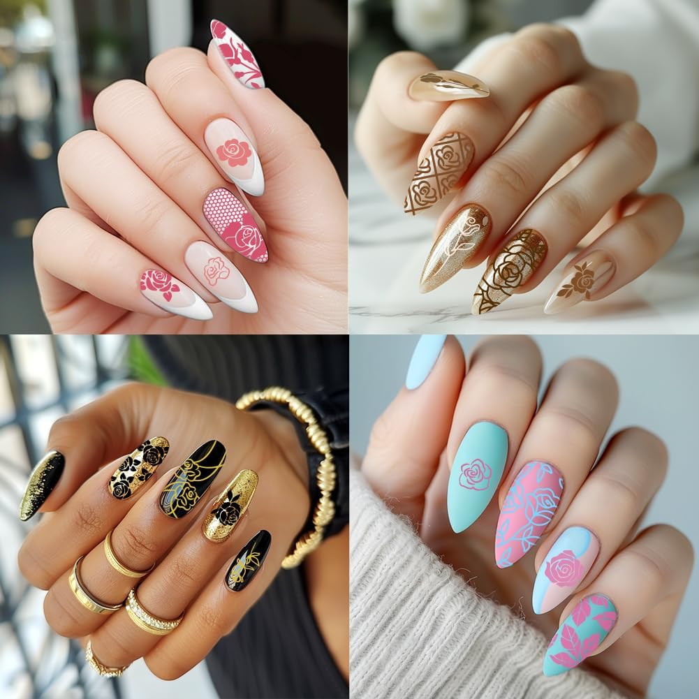 - Package Information: A total of 3 templates, 1 nail stamp and scraper, various rose flower and bouquet patterns, randomly collocation, leading the nail fashion, the world at your fingertips jump