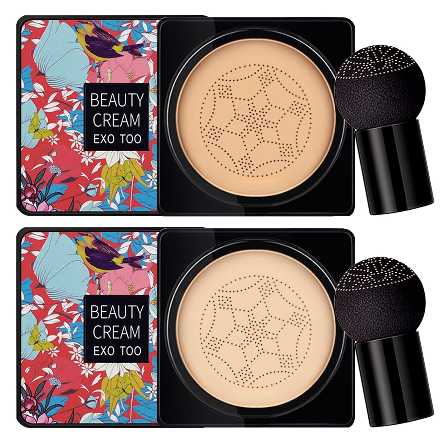 NUIBO 2PCS Air Cushion CC Cream Mushroom Head, Moisturizing Concealer Makeup Base, Primer Liquid Foundation Long Lasting with Two Mushroom Makeup Sponges 【1 X Natural & 1 X Ivory】