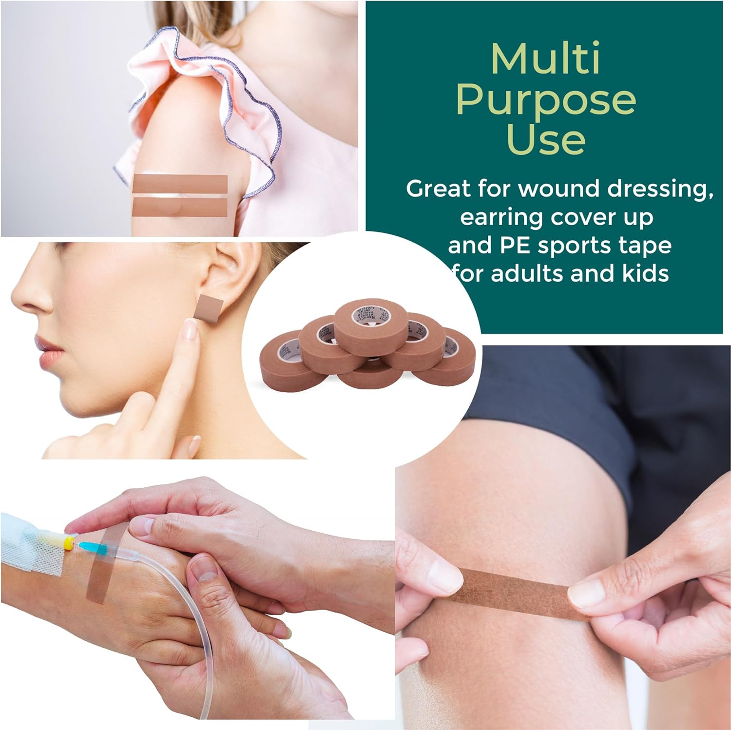 - Water-Resistant & Multi-Purpose Use: A trusted tan surgical tape option for wound care, nose tape after rhinoplasty, sports taping, and earring cover-ups. Trusted for both adults and kids.