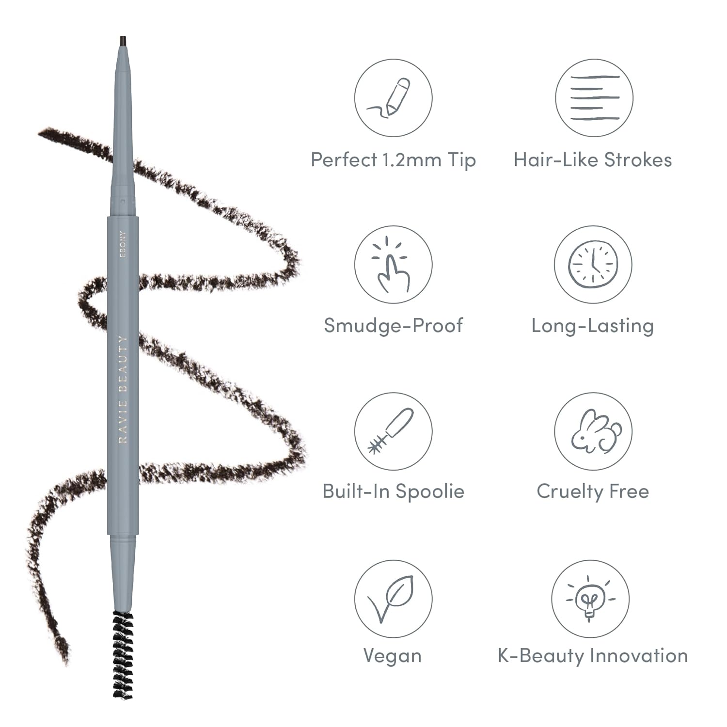 - Product Benefits : 1.2MM Precision, Built-In Spoolie, Hair-Like Strokes, Long Lasting, Smudge Proof