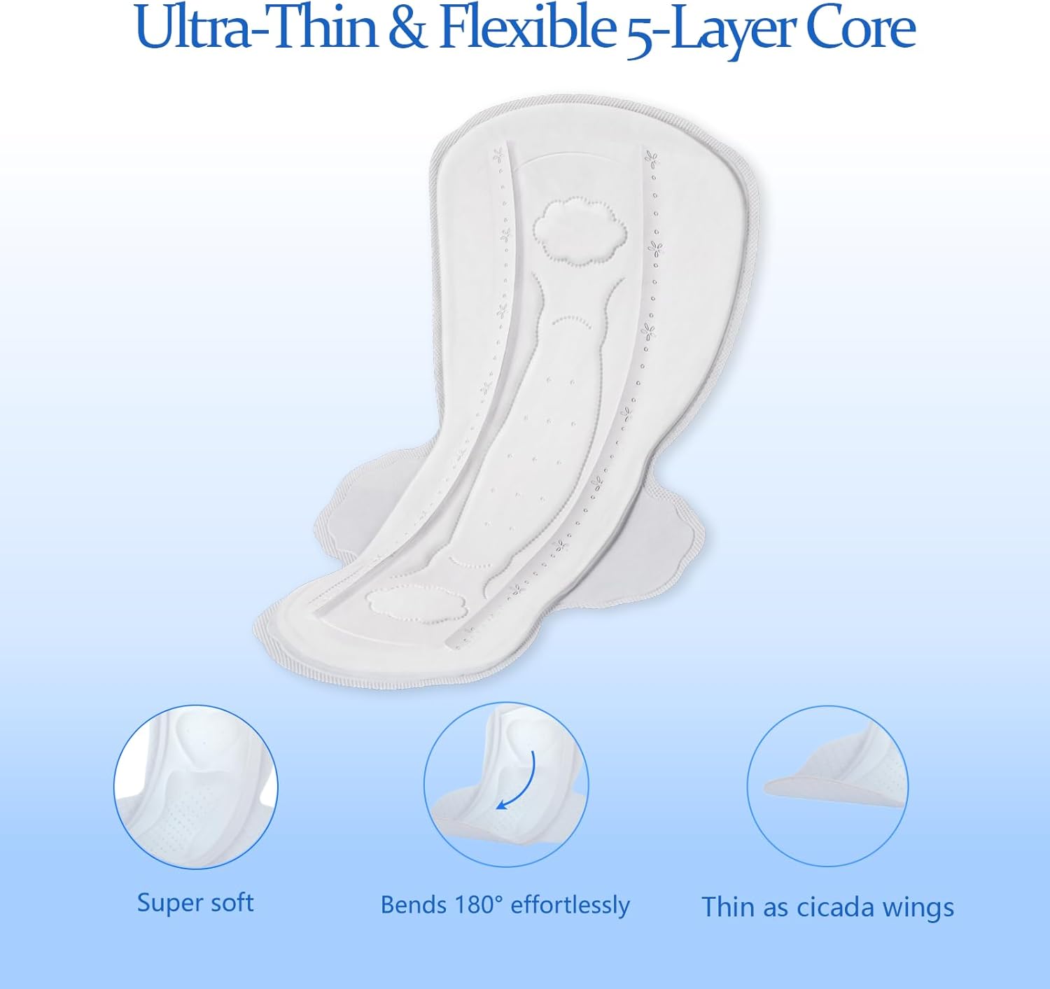 - Move Freely, No Leaks, No Embarrassment:Modal Ultra Thin Pads with Wings feature an advanced five-layer composite core (non-woven fabric, fluff pulp, and SAP) designed for rapid absorption, keeping you dry, fresh, and confident all day long. The secure wings provide a snug fit to ensure the pad stays firmly in place, effectively preventing leaks. Whether you're at work, running errands, or constantly on the go, enjoy unmatched comfort and leak-free protection