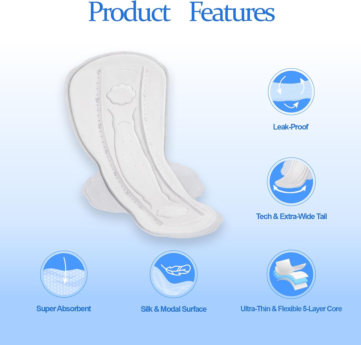 - Move Freely, No Leaks, No Embarrassment:Modal Ultra Thin Pads with Wings feature an advanced five-layer composite core (non-woven fabric, fluff pulp, and SAP) designed for rapid absorption, keeping you dry, fresh, and confident all day long. The secure wings provide a snug fit to ensure the pad stays firmly in place, effectively preventing leaks. Whether you're at work, running errands, or constantly on the go, enjoy unmatched comfort and leak-free protection.