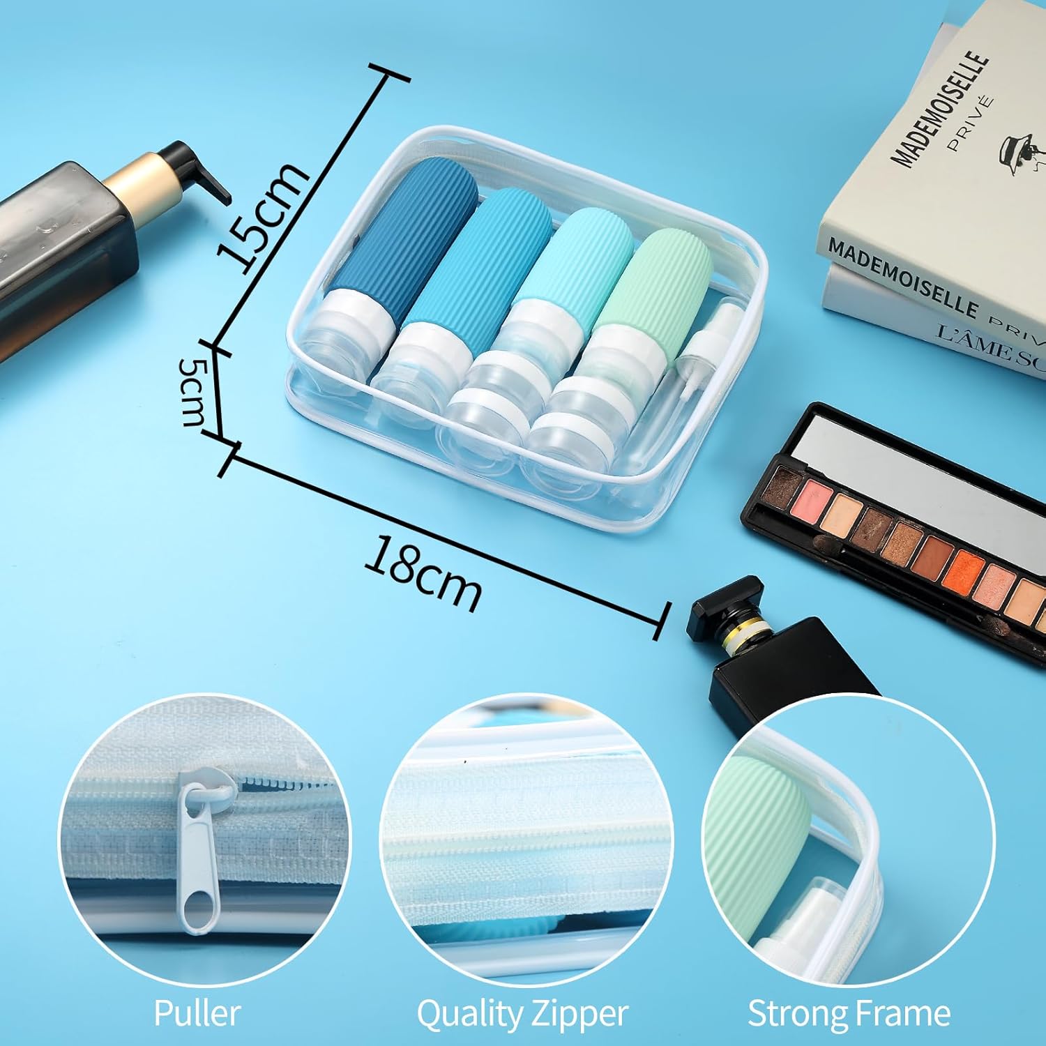 - Useful Travel Accessories: This is a nice assortment of travel containers in a useful zip case. ( Come in 4 Travel Bottles+4 Travel Jars+2 Spray Bottles+2 Scoopers+1 Funnel+1 Clean Brush + 1 Page Label + 1 Clear Toiletry Bag ) Multiple ones allow you take along different beauty products and toiletries according to your requirement