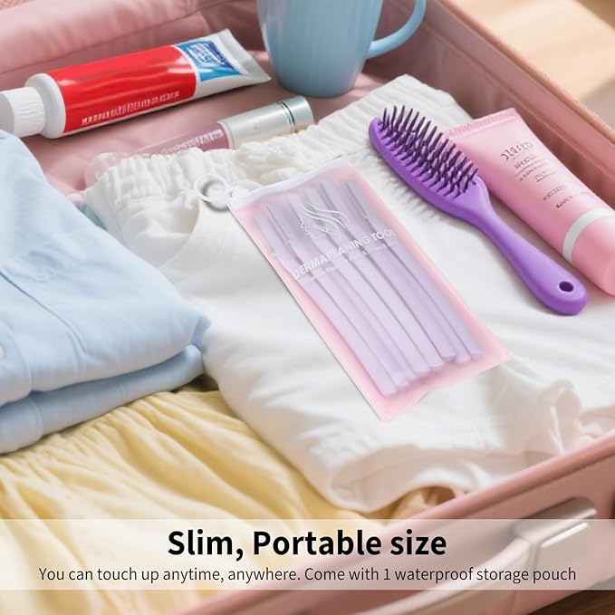 - Travel-Ready Design with Storage Pouch: Compact and TSA-friendly, the razor fits seamlessly into makeup bags or luggage. The included waterproof travel pouch keeps blades hygienic and organized—ideal for gym-goers, busy moms, or globetrotters seeking perfect skin on the go. Treat your loved ones to a thoughtful present. This Dermaplaning Tool is a practical choice for women seeking on-the-go facial care, making it a perfect addition to any beauty routine