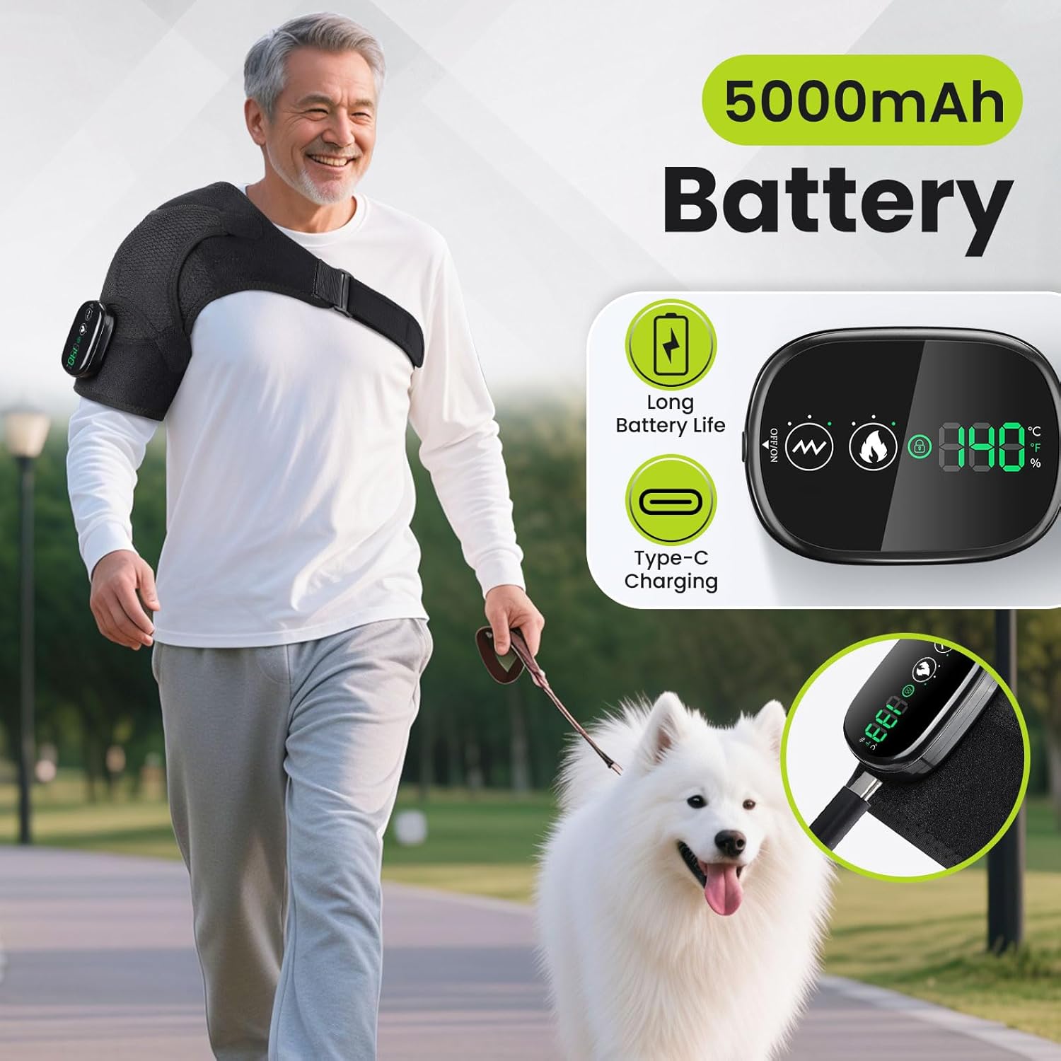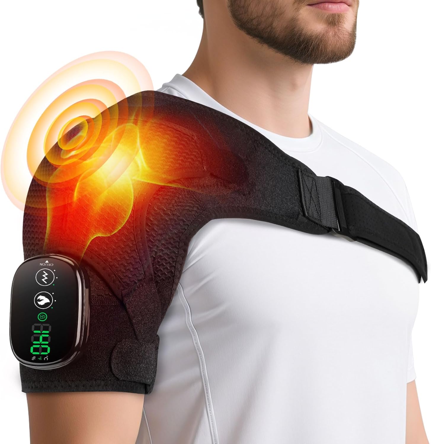 - CORDLESS AND PORTABLE – Experience freedom with this lightweight, rechargeable heated shoulder brace wrap, equipped with a built-in 5000mAh battery. Enjoy deep warmth and soothing vibrations anywhere—at home, in the office, or while traveling. The hassle-free cordless design allows you to indulge in comforting shoulder warmth at your convenience, while the intuitive touchscreen ensures effortless adjustments. No cords, no limits.