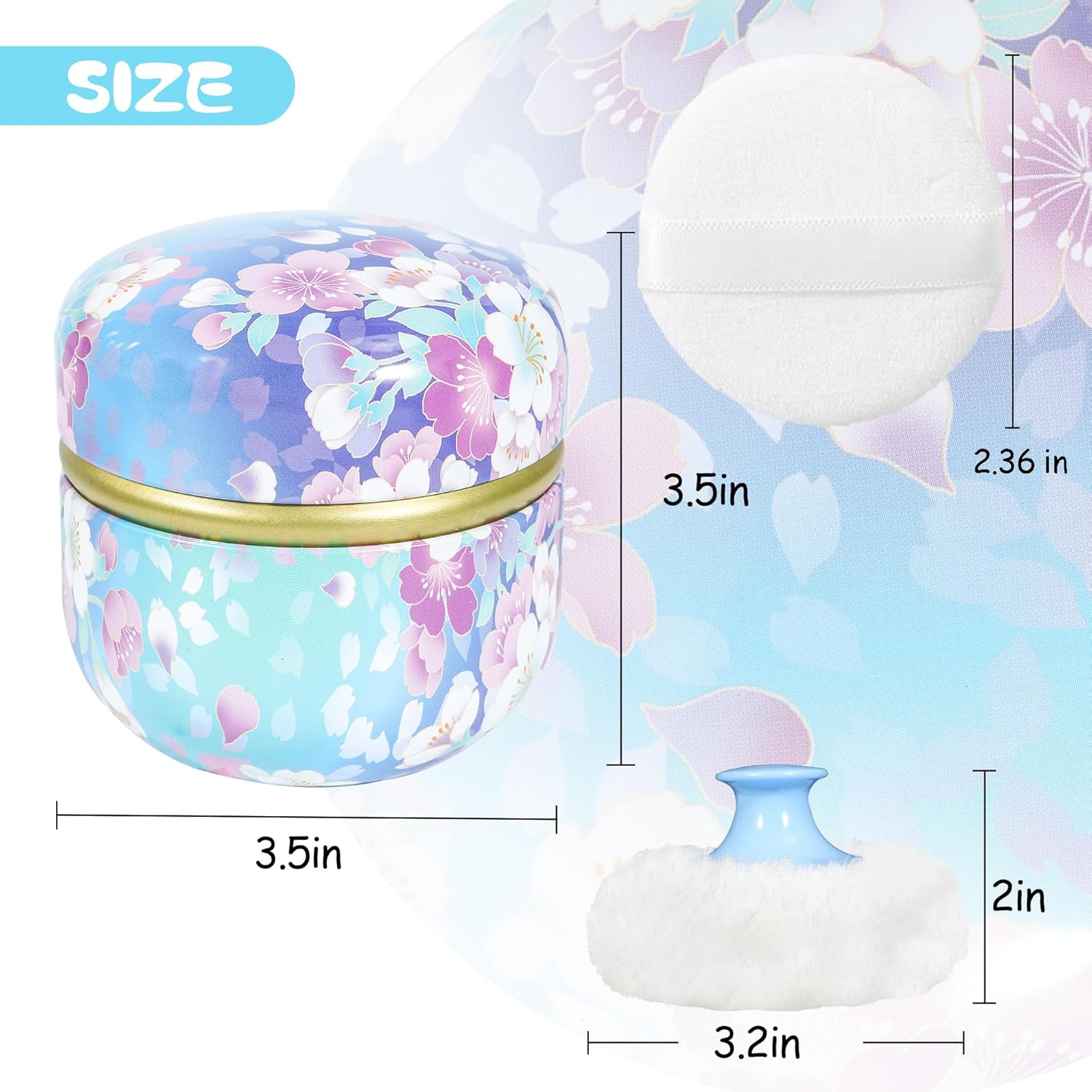 - Size: The powder box is 3.2" diameter/width.The powder puff is 3.15"/8cm in diameter and 2"/5cm in height.The small powder puff is 2.36"/6cm in diameter.