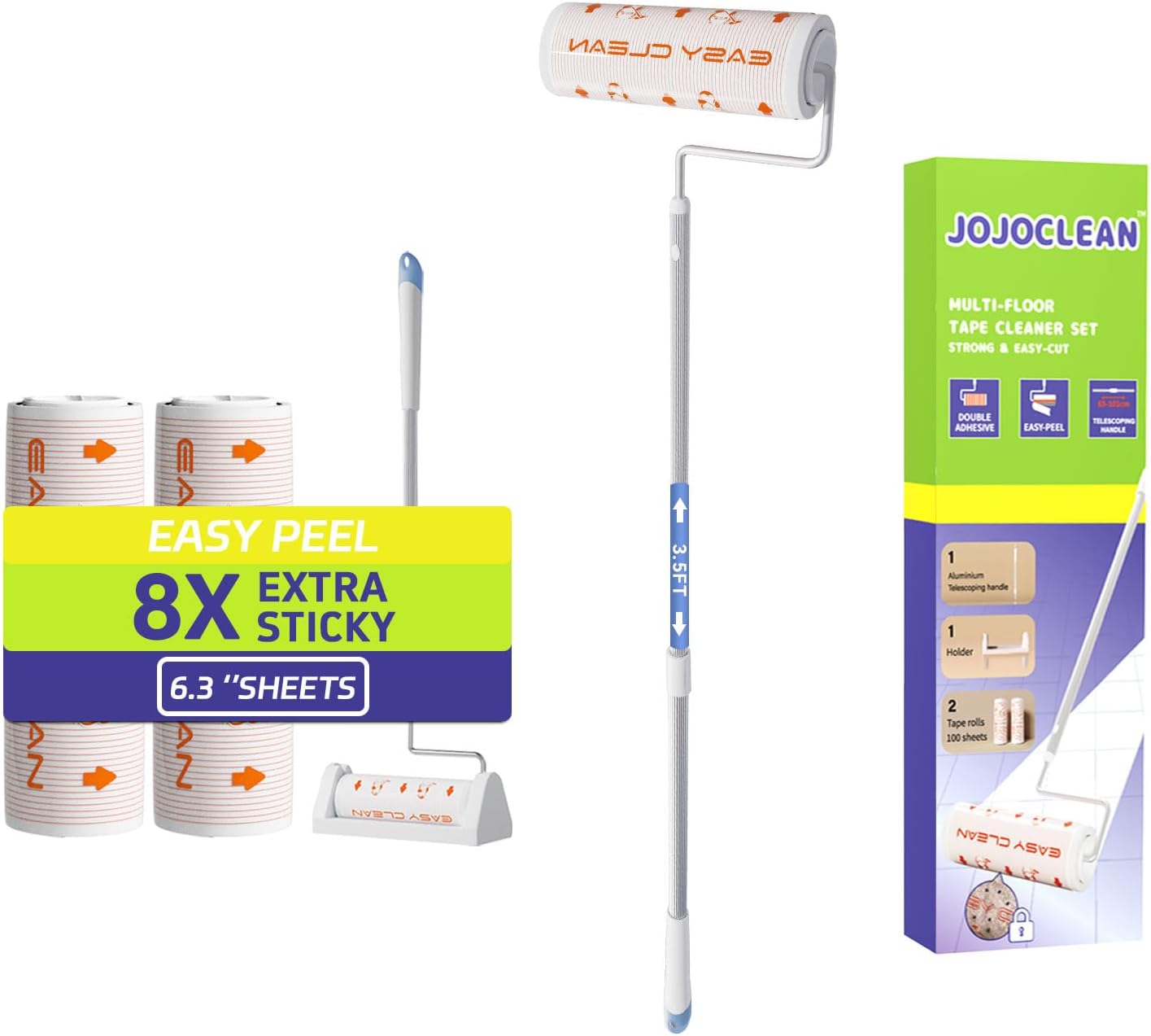 Large Lint Rollers for Pet Hair Extra Sticky for Floor, Carpet and Couch, with 3.5-Foot Adjust Handle and 100 Sheets 8X Adhesion