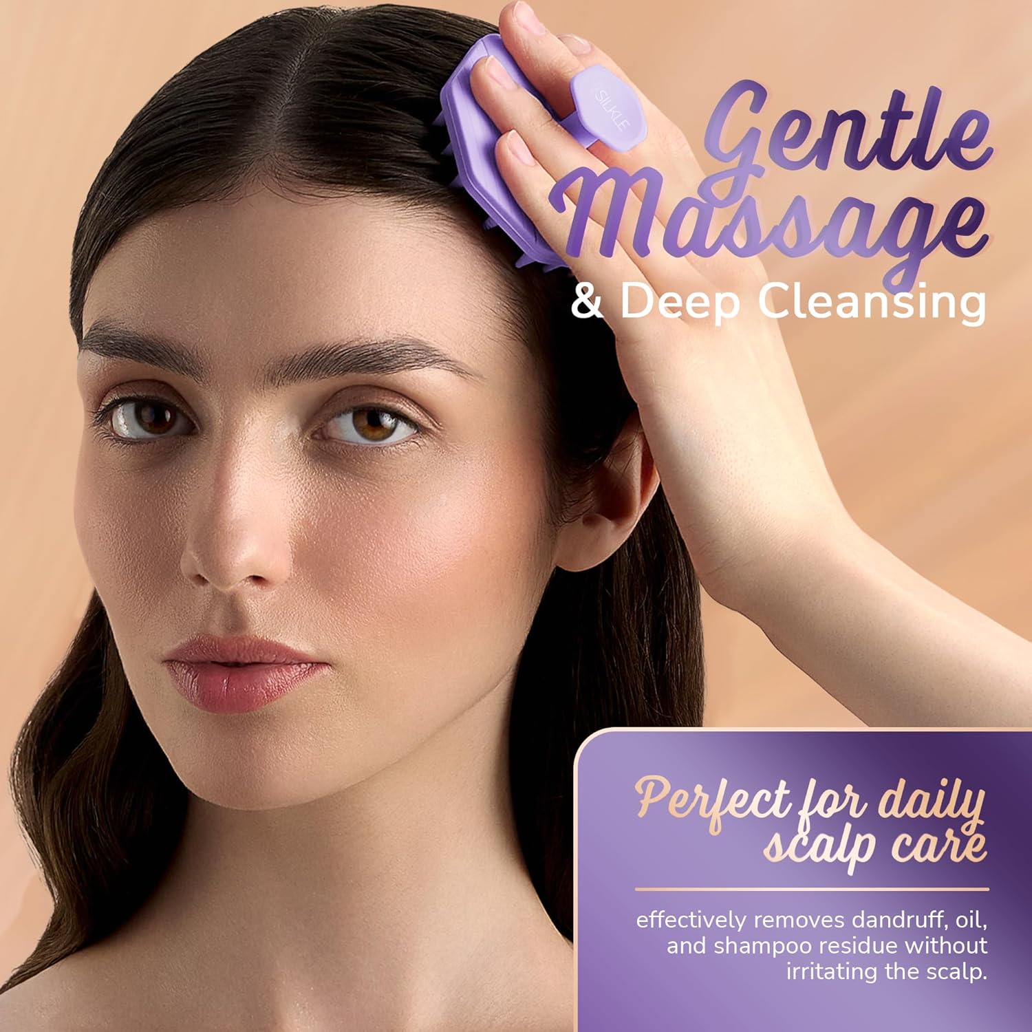 Silicone Scalp Scrubber - Massage Shampoo Brush, Soft Bristles for Hair Growth & Dandruff Removal - Ergonomic Design, Wet & Dry Use, Deep Cleansing Scalp Exfoliator for All Hair Types - Purple