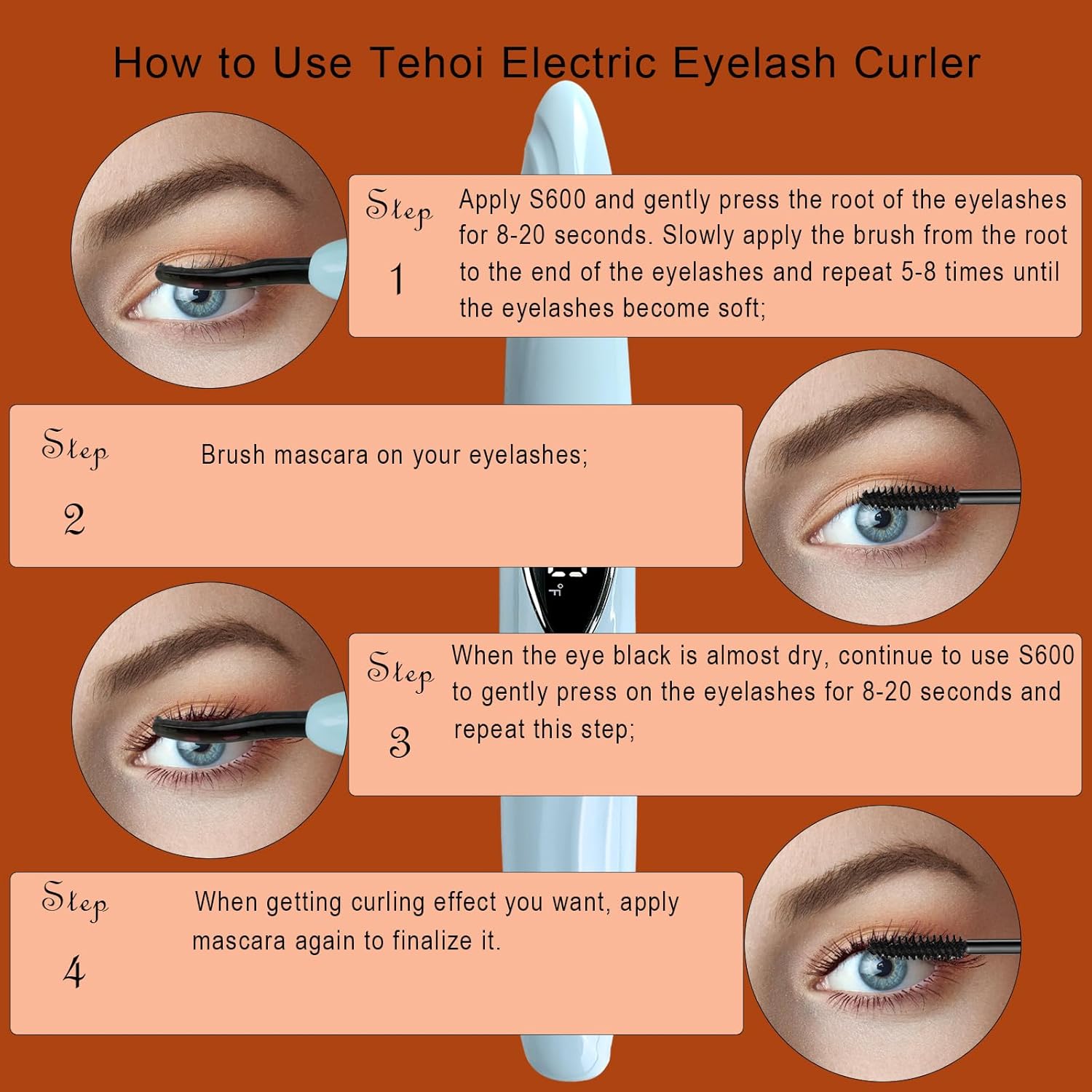 - 【Rapid Heating & Natural Long-Lasting Curls】Heated Eyelash Curler – Ditch clunky traditional curlers! Our heated eyelash curler heats up in just 10+ seconds—no tedious waiting, ideal for quick eye makeup prep. Its uniquely curved head fits your eye’s natural contour, quickly shaping flawless natural curls to enhance your look. Need more definition? Simply increase the temperature for better results, no lash damage. Pair this eyelash curler heated with mascara: it effortlessly separates lashes to avoid clumping, locking in a 24-hour long-lasting natural curl. From morning commutes to evening outings, your lashes stay perfectly curled, giving you a stunning, eye-catching gaze all day.