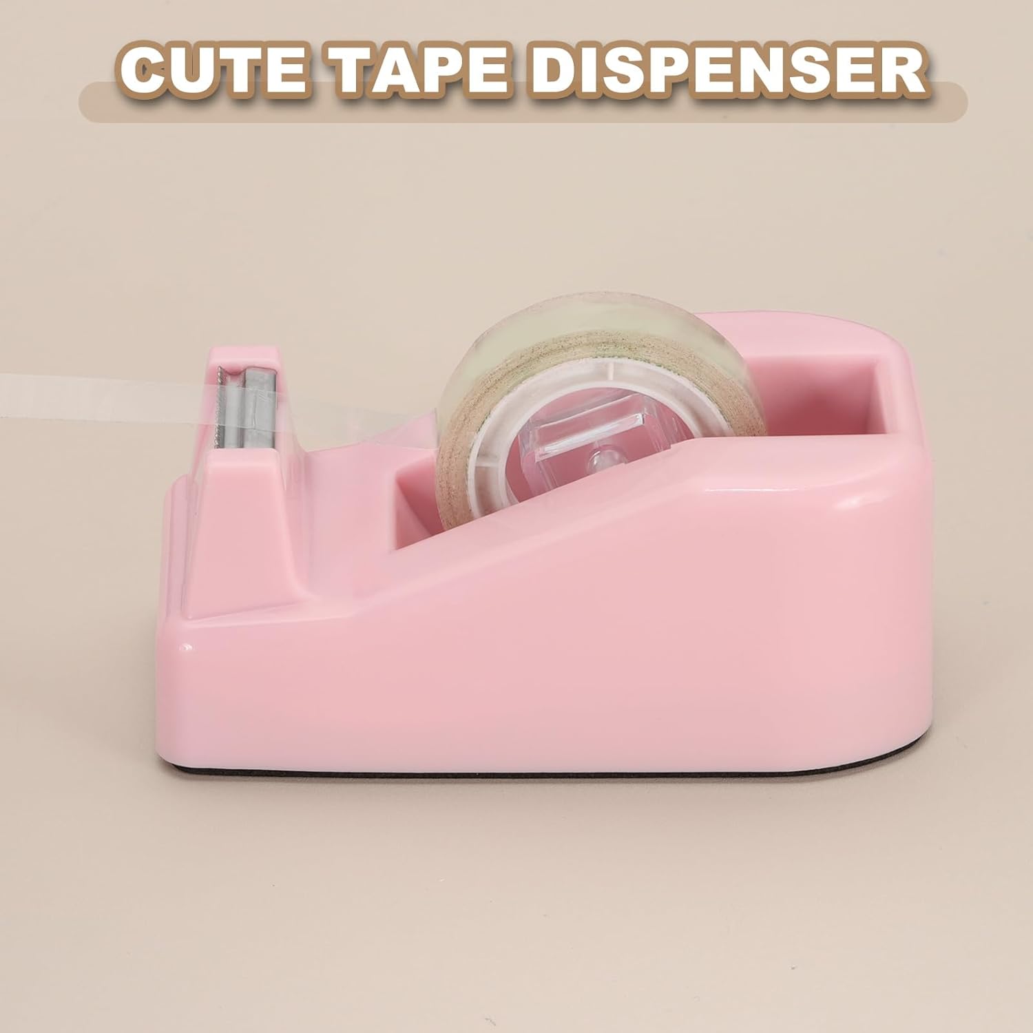 - Application: This tape dispenser can help you cut off the tape easily with one hand. The desktop tape dispenser combines function and style. It is a great accessory for Tape, office clerks, packing tape, moving boxes, mailing, shipping, craft and DIY making and so on. It is a practical stationery tool for office, home, education, etc.