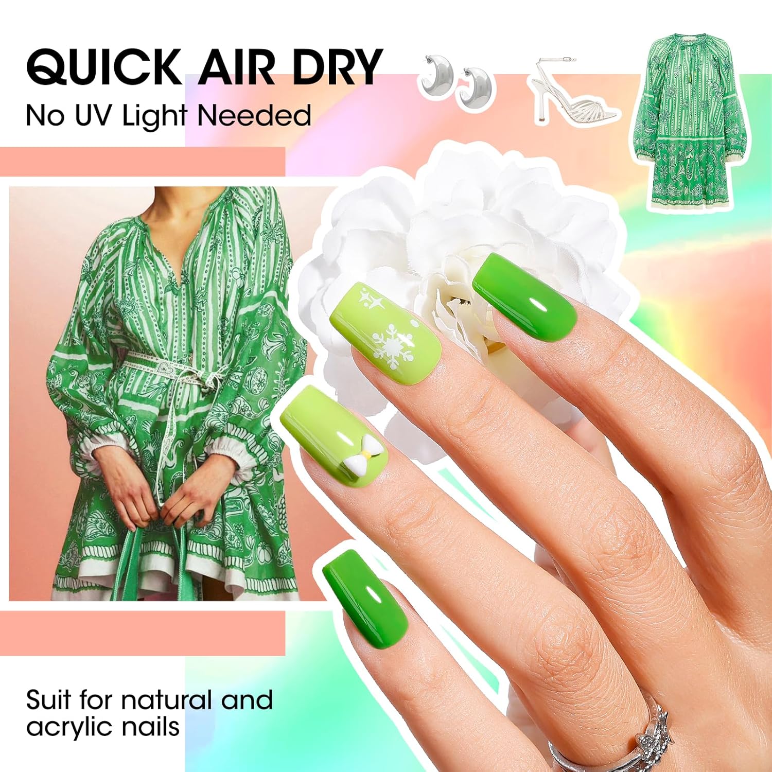 - Vibrant Neon Shades: 12 high-pigment colors for eye-catching manicures, perfect for festivals, parties, and summer looks