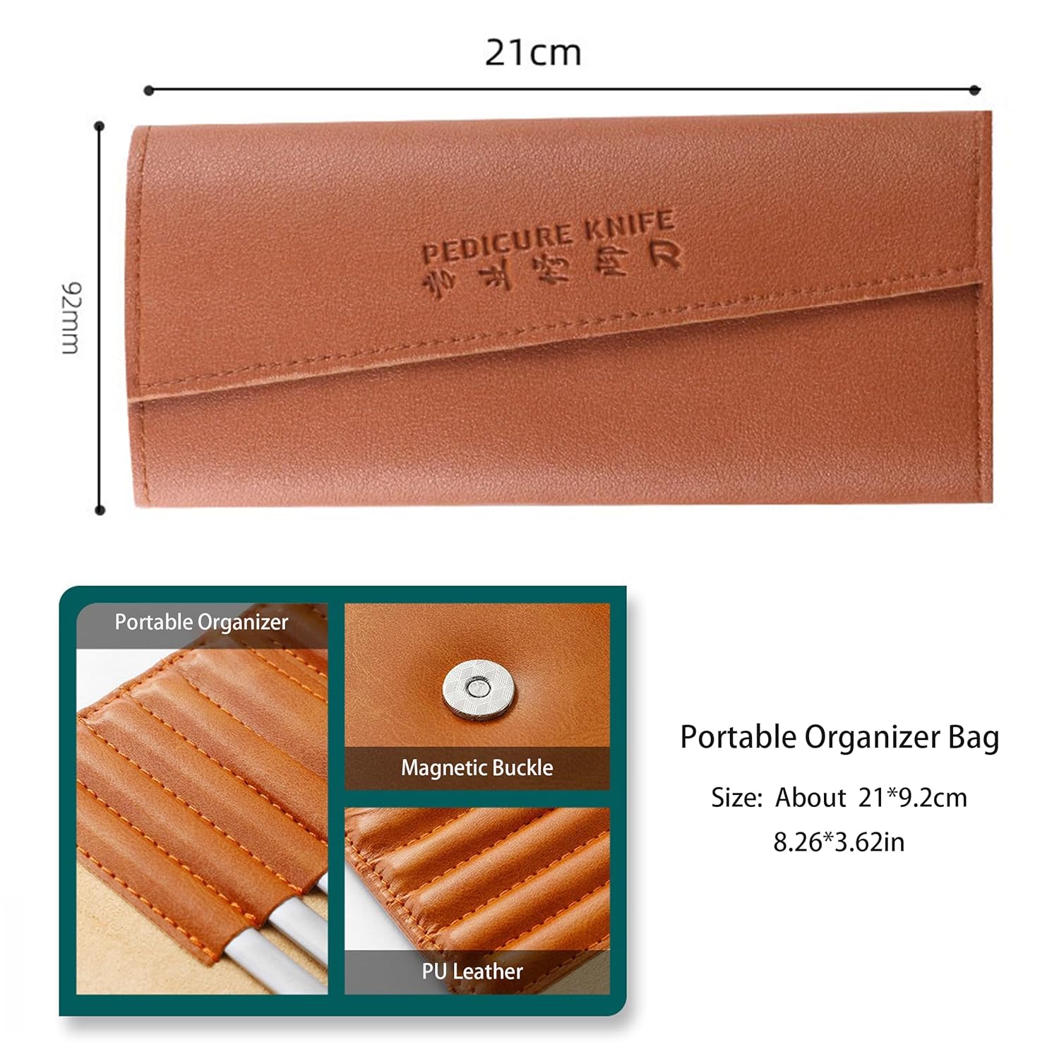 - EASY TO CARRY: Pedicure Nail Knife Set with storage bag, easy to store and carry, quite suitable for gift giving. Easy to carry for anywhere and anytime. The tools approx.16cm/ 6.3 inch (Length).
