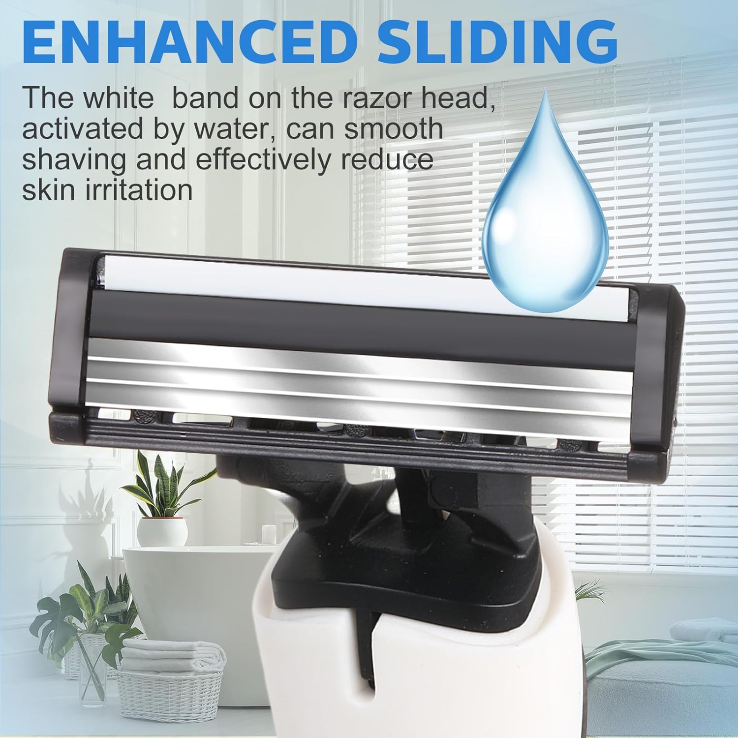 - Enhanced Glide: the men's disposable razors head becomes lubricated when exposed to water, which ensures smooth glide, easy shaving and comfortable use