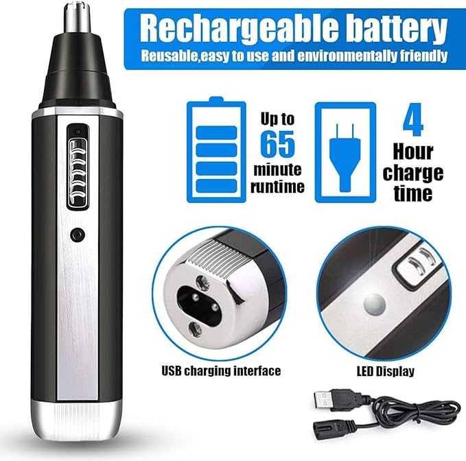 - 2.Precision Ear & Nose Trimmer – Safe, hygienic grooming made easy, dual-blade safety system – Specially designed dual-edge blades + 360° rotating head trim hair smoothly without nicks or pulls,detachable blade rinses clean in seconds (no more gross buildup!)