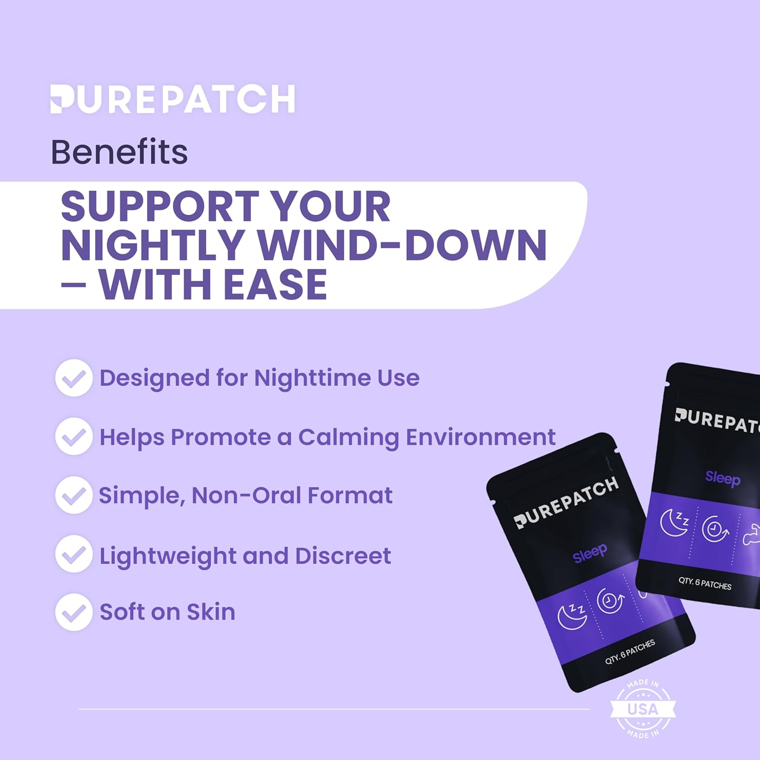 Pure Patch Sleep Patch – Plant-Based Vegan Topical Patch – Magnesium Glycinate – GABA – L-Theanine – Apigenin – Non-Ingestible – Water-Resistant – Gentle on Skin – Gluten Free – Made in USA –12Patches