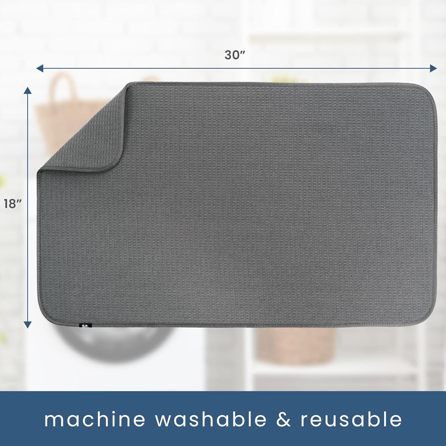 S&T INC. Dish Drying Mat Jumbo, 18” x 30”, Absorbent Microfiber Kitchen Counter Mat, Dish Drying Pad for Dishes, Utensils, Pots and Pans, Jumbo, Charcoal