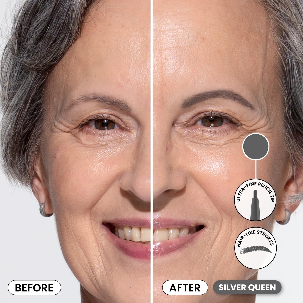 PrimeBrow Pencil for Mature Women – Ultra-Precise Tip for Natural, Hair-Like Strokes – Smudge-Proof & Long-Lasting Wear – Great for Thinning, Sparse, or Graying Brows (Silver Queen)