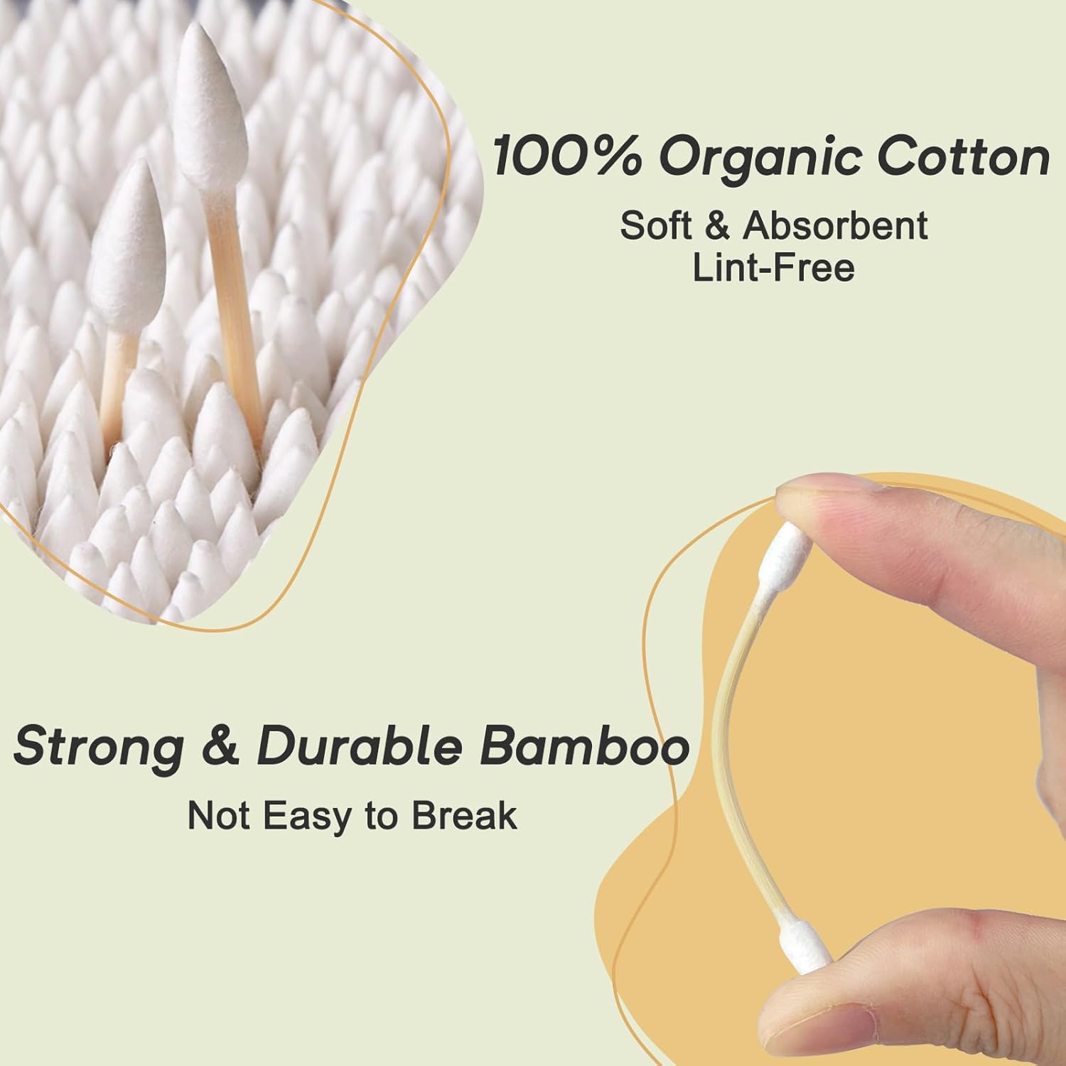 - Double-Tipped Organic Cotton Buds: Soft, gentle organic cotton swabs for delicate areas, ensuring safe ear care, cotton swabs for makeup removal, and clean, precise touches.