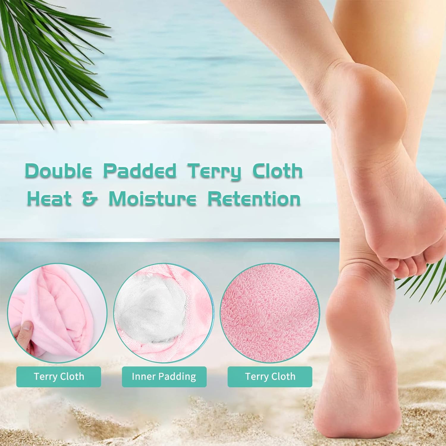 Paraffin Wax Bath Terry Cloth Gloves & Foot Liners, Paraffin Wax Machine Heated SPA Mittens Foot Liners, Thick Heat Hand Feet Treatment Insulated Mitt Spa Feet Cover Great for Men Women (Pink)