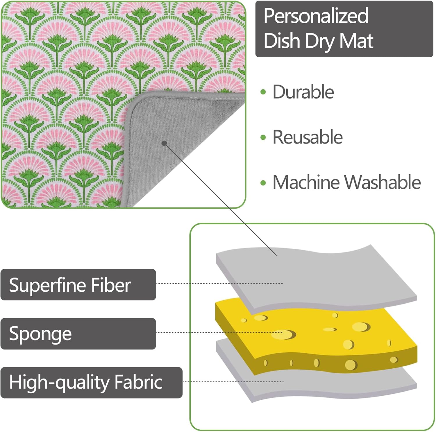 SHIYUE Dish Drying Mat for Kitchen Counter Super Absorbent Spring Kitchen Decor Microfiber Drying Matainers Rack Fast Pad Dish Drainer Mats(Bohe Flower,16''x18'')