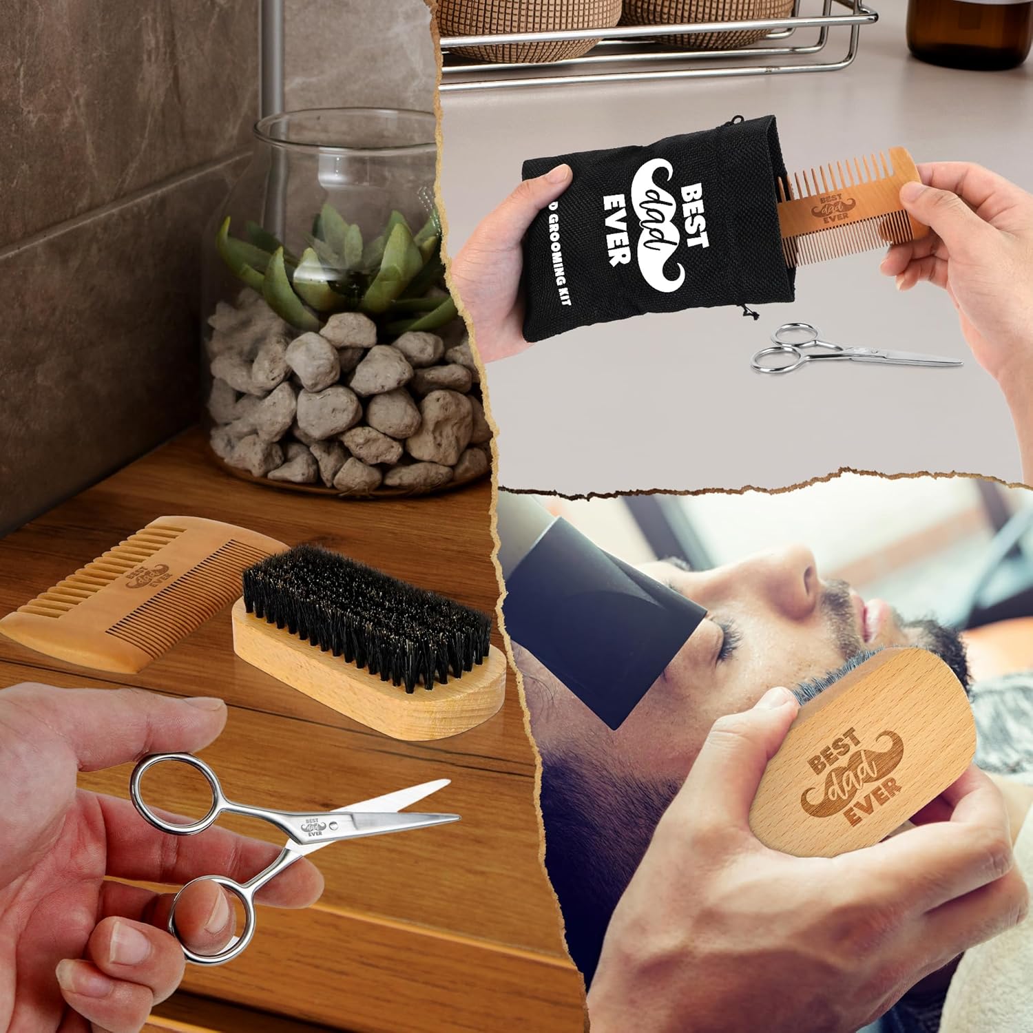 - FATHERS DAY GIFTS FOR DAD - Surprise your dad with this thoughtful Fathers Day gift that speaks volumes. This beard grooming set includes a boar bristle brush, pearwood comb, and stainless scissors, making it perfect for Fathers Day gifts from daughter wife kids. A unique pick for funny Fathers Day gifts, Fathers Day gifts from son, Fathers Day card, or happy Fathers Day card gifts, it’s a daily reminder that he's the best.
