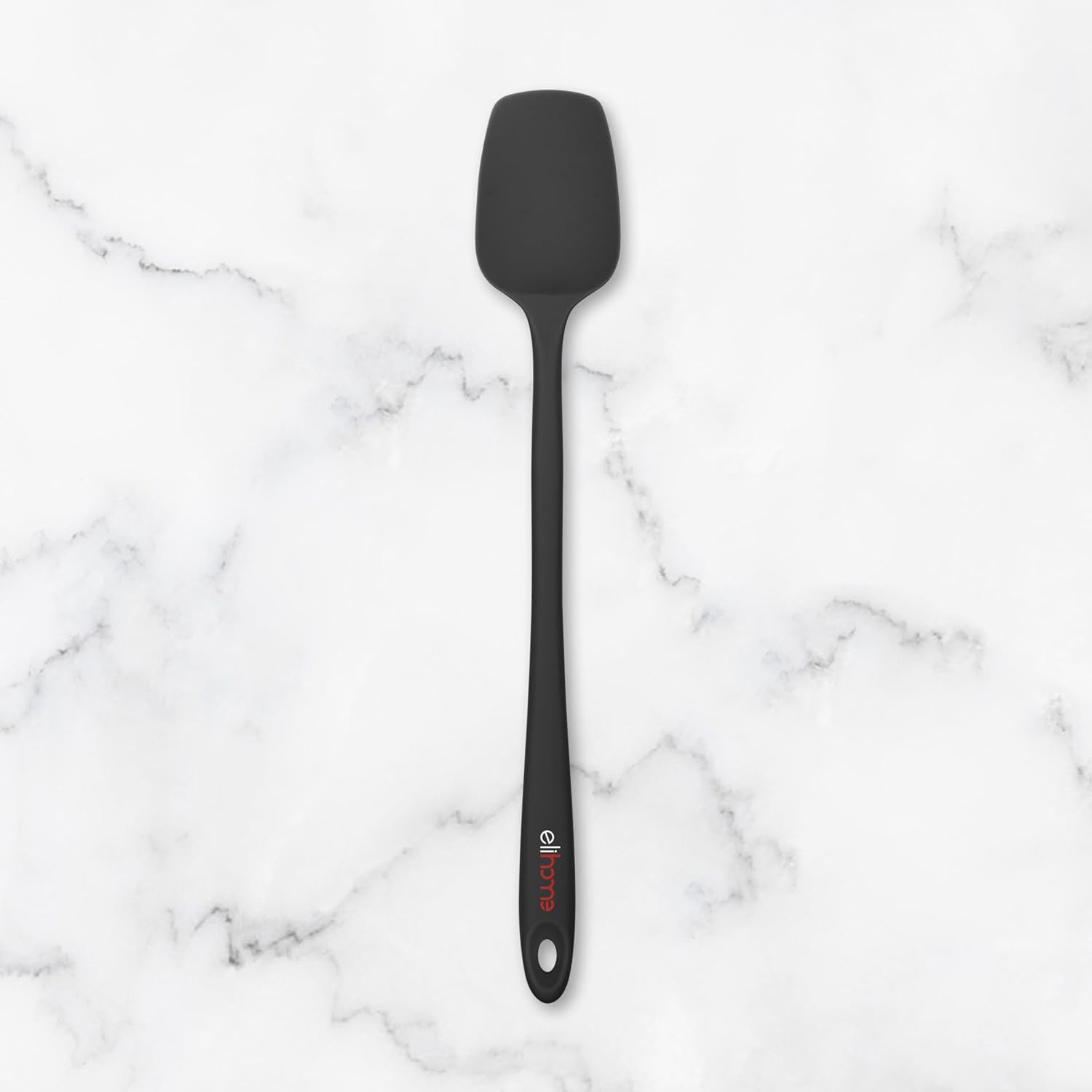 Elihome Skinny Silicone Spoonula - Non-Stick Heat Resistant Silicone Scraper Spatula for Mixing, Serving, Scraping, Stirring, and More - 11 Inch, Black