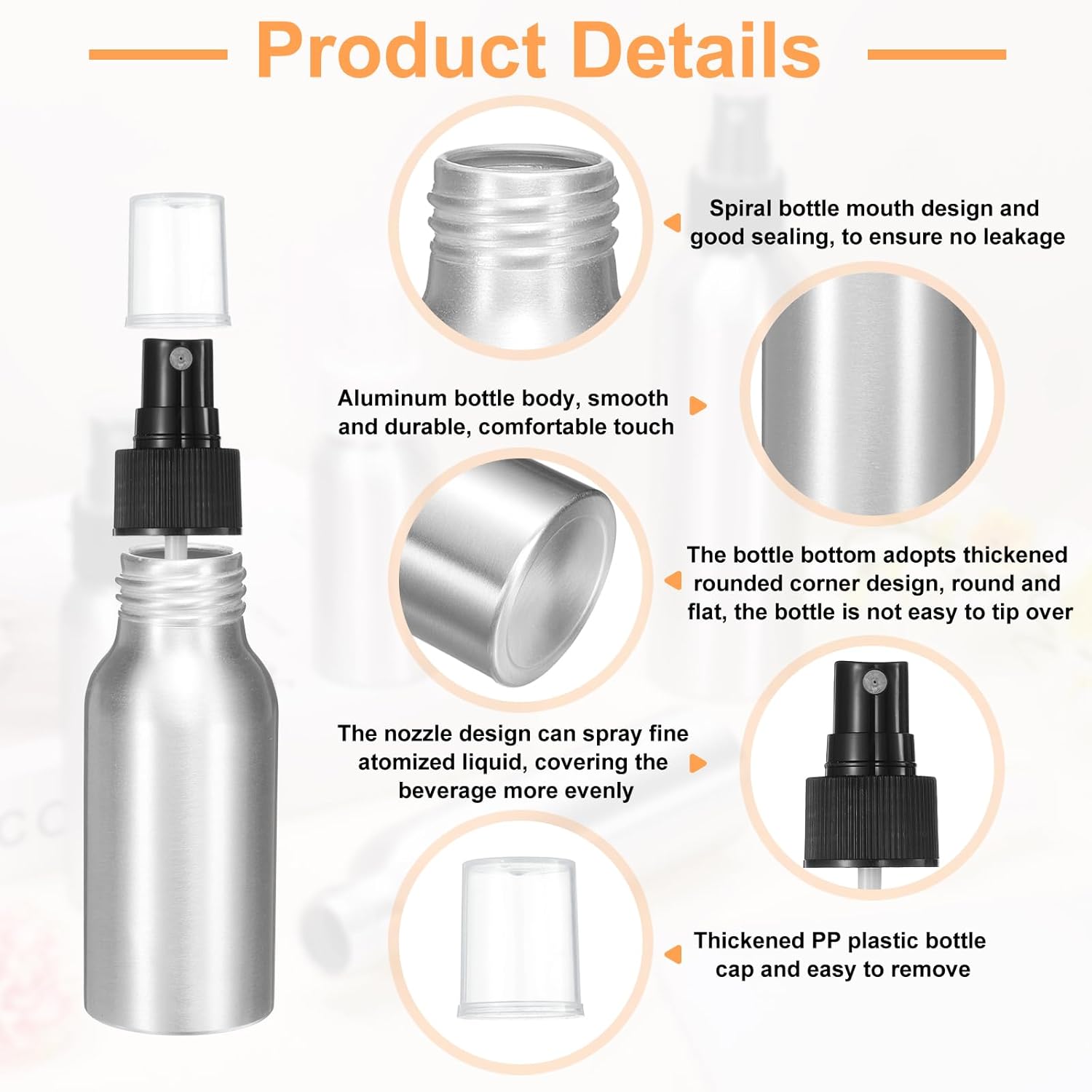 HARFINGTON 5pcs Aluminum Fine Mist Spray Bottles 50ml/1.7oz Metal Small Liquid Alcohol Refillable Travel Container with Black Plastic Nozzle Cap for Perfume Skincare Cosmetic Storage Bottle
