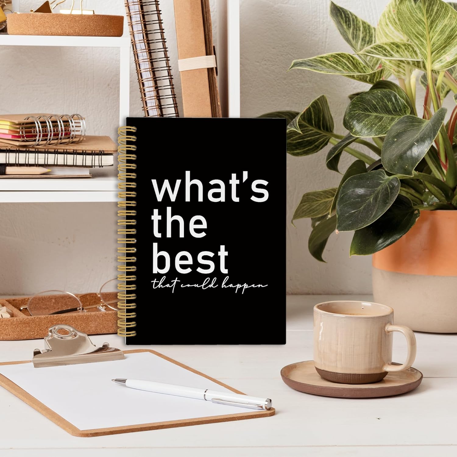 Motivational Positive Affirmations Journal Notebook, Inspiring School Office Supplies, What's the Best That Could Happen Hardcover Spiral Notebook 5.5x8.3 Inch