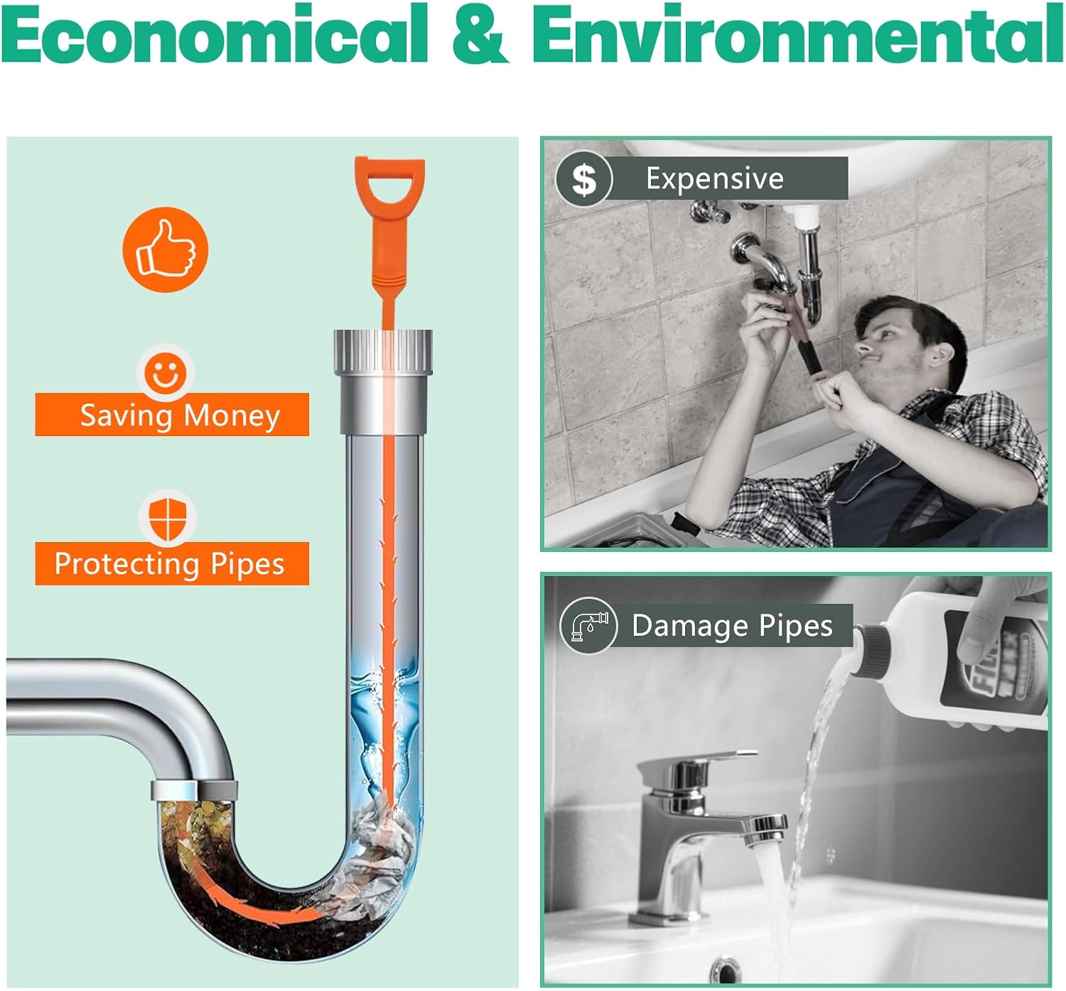 - Economical & Green: The hair drain clog remover cleaning tool are very easy to use and also easily rinse off for re-use.You won’t need the expensive plumber service and more green and secure than bad smell chemical drain cleaners