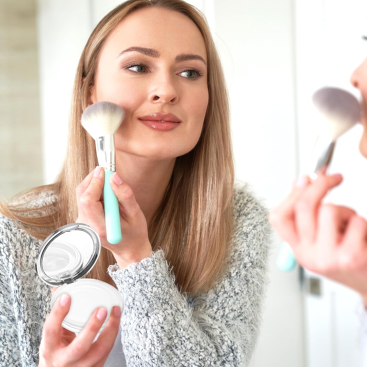 - Portable loose powder case: Our loose powder case has a diameter of 7.6cm and a thickness of 1.5cm. The small size can be easily put into your small bag. It weighs about 85g, which will not increase your burden. Even if you carry it for a long time, it will not feel heavy or cumbersome. Whether you are going out shopping, traveling, or on a business trip, you can carry your loose powder anytime and anywhere, so that you can quickly touch up your makeup when you need it