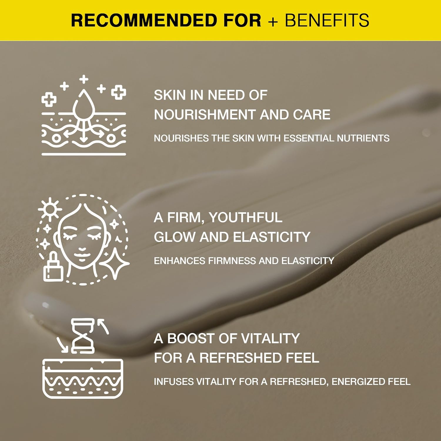 - Promotes deep hydration, vitality, and firmness for resilient skin.