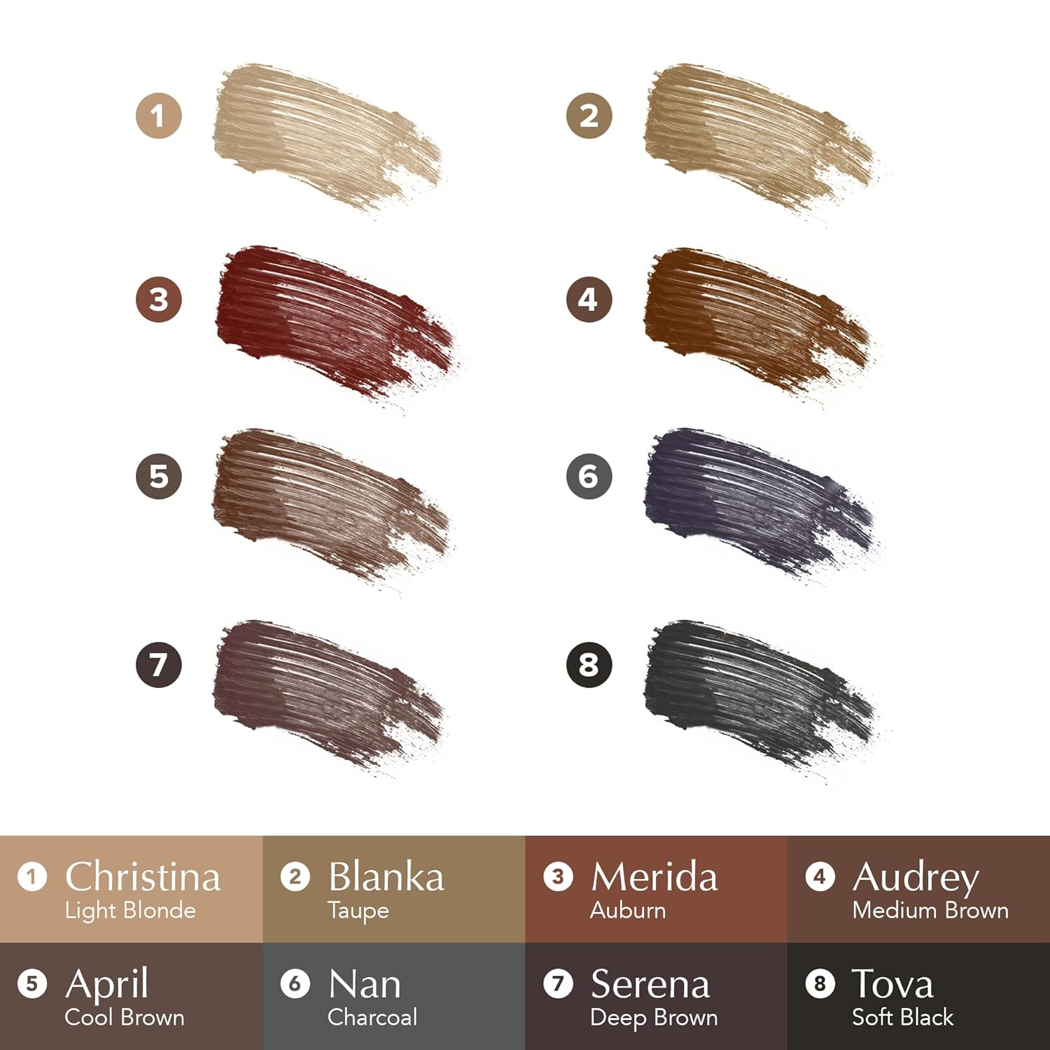 - NATURAL DEFINITION: Achieve full, defined brows with this tinted gel that enhances the shape and fills in sparse areas. It provides a soft, flexible hold for a natural look and is available in 8 inclusive shades to match a variety of brow tones. Christina (Light Blonde) is perfect for silver or light to dark blonde eyebrows.