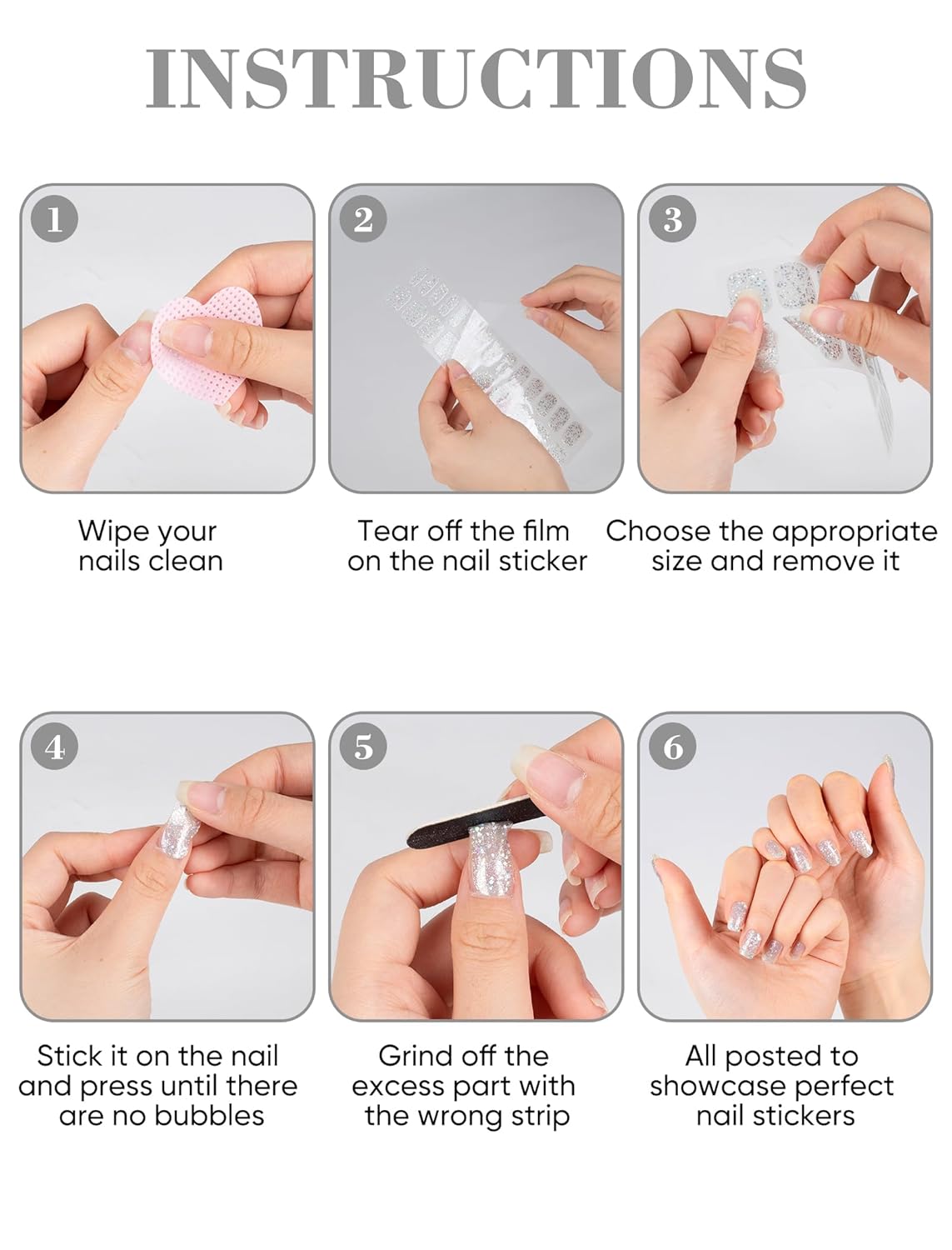 - Complete Starter Kit: Comes with 48 nail stickers, one nail file, and two heart-shaped nail cleaning blocks. This comprehensive kit provides everything you need to apply and shape the nail strips perfectly, ensuring a snug fit on your nails