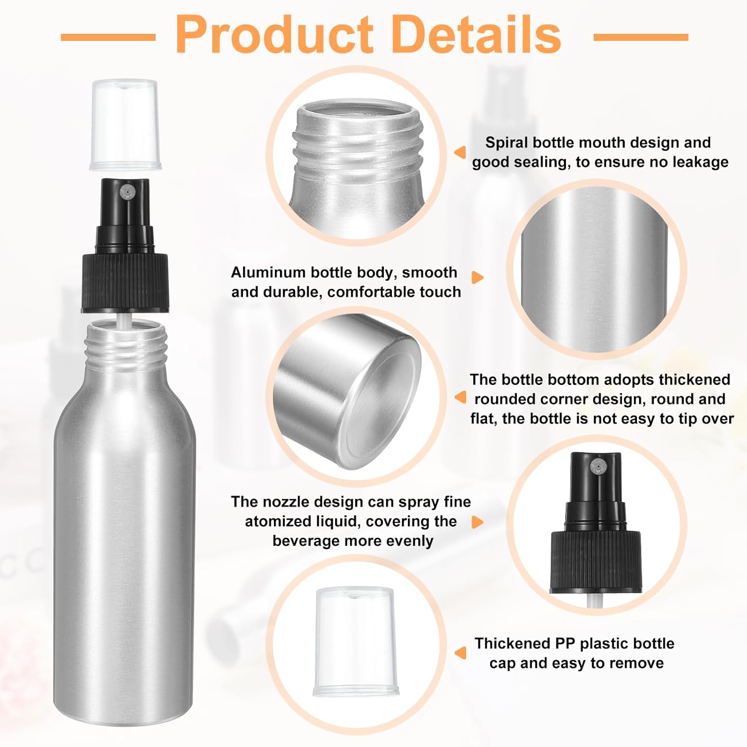 - Applications - This metal refillable container is widely used in kitchens, bathrooms, offices, travel vacations, etc., and can be used to store floral water, perfume, spray, essential oils, air freshener, toner, etc