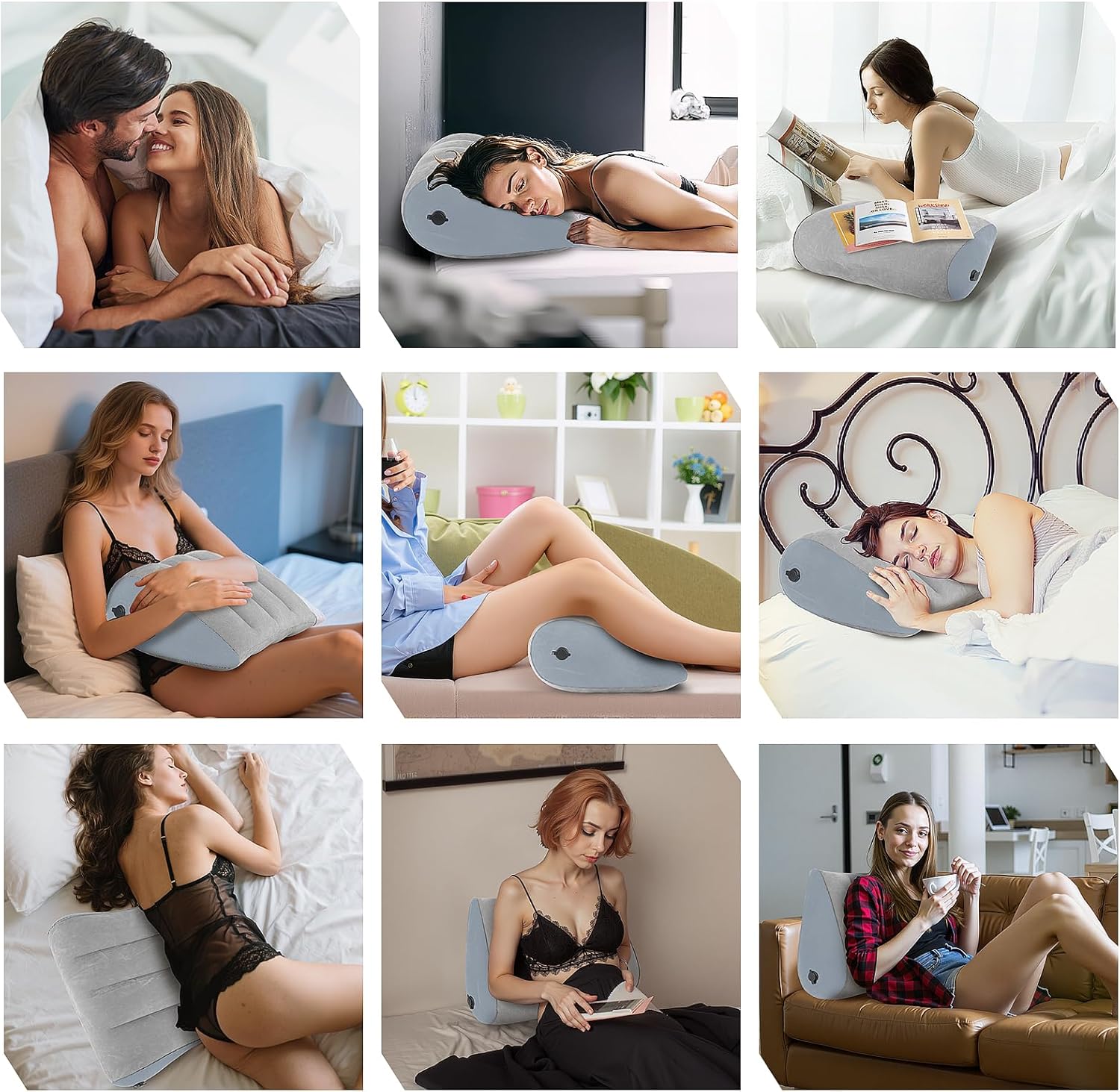 - Bed wedge: The inflatable wedge seat can be used as a leg pillow. Can be used as a lumbar pillow when sitting on bed. Can also be used as knee support or foot support. Helps reduce muscle and joint pain, increase blood circulation and help reduce nervous stress, leaving you completely comfortable and relaxed for a healthier mind and body.