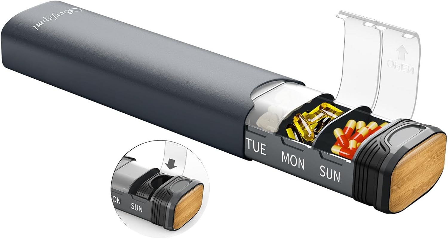 - MODERN AESTHETIC PILL ORGANIZER- Are you tired of old cheap plastic,clinical looking pill case? Are you feeling embarrassed when you take out your pill organizer in public? This 7 days pill organizer has sleek design and blends into your desk objects well. No one knows it is a pill box. No more pesky questions when people come over. This gives you more privacy. You can keep it on your table as an reminder for you to take pills