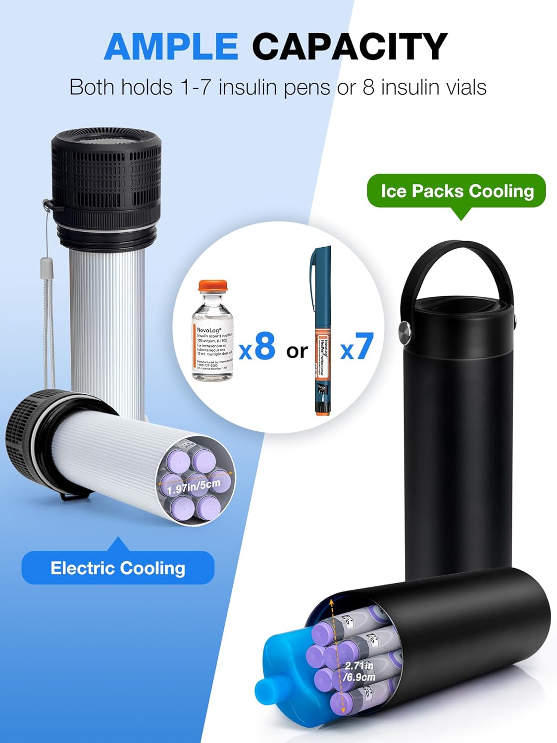 • 📦 Larger Capacity & Smaller Size - Unlike other insulin organizer, the YOUSHARES diabetic travel case has more space to hold up to 8 insulin vials or 1-7 insulin pens or other medications. It measures only 2.9 x 2.9 x 10.2 in and can be easily held in one hand. Comes with a portable backpack and 90-degree charging cable for more convenient travel!