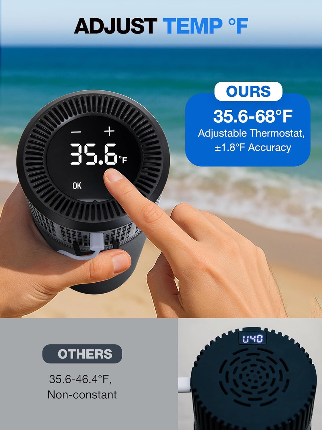 • 🌡️ Adjustable Thermostat & Temp Display - The electric insulin case allows you to manually adjust the inner temperature (from 35.6-68°F , accuracy ±1.8°F) , and maintains constant temp without time limits. It has real-time temperature display to monitor the inner temp and support °C/°F toggle.