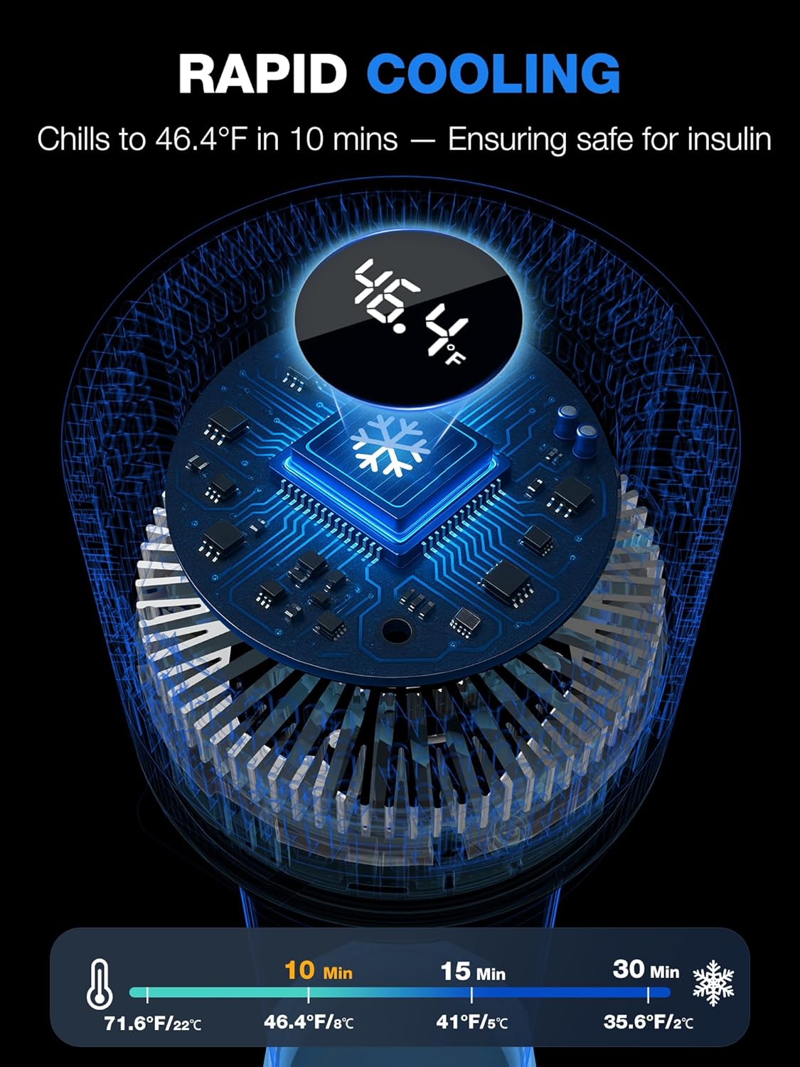 • ❄️ USB Charge & Rapid Cooling - Equipped with upgraded electric chiller, it can quickly cool down to 46.4℉ in 10 minutes without insulin freezing. USB charging, no matter you are in the car, plane, train, or at the computer, power bank, car lighter, the travel medicine case can work stably.