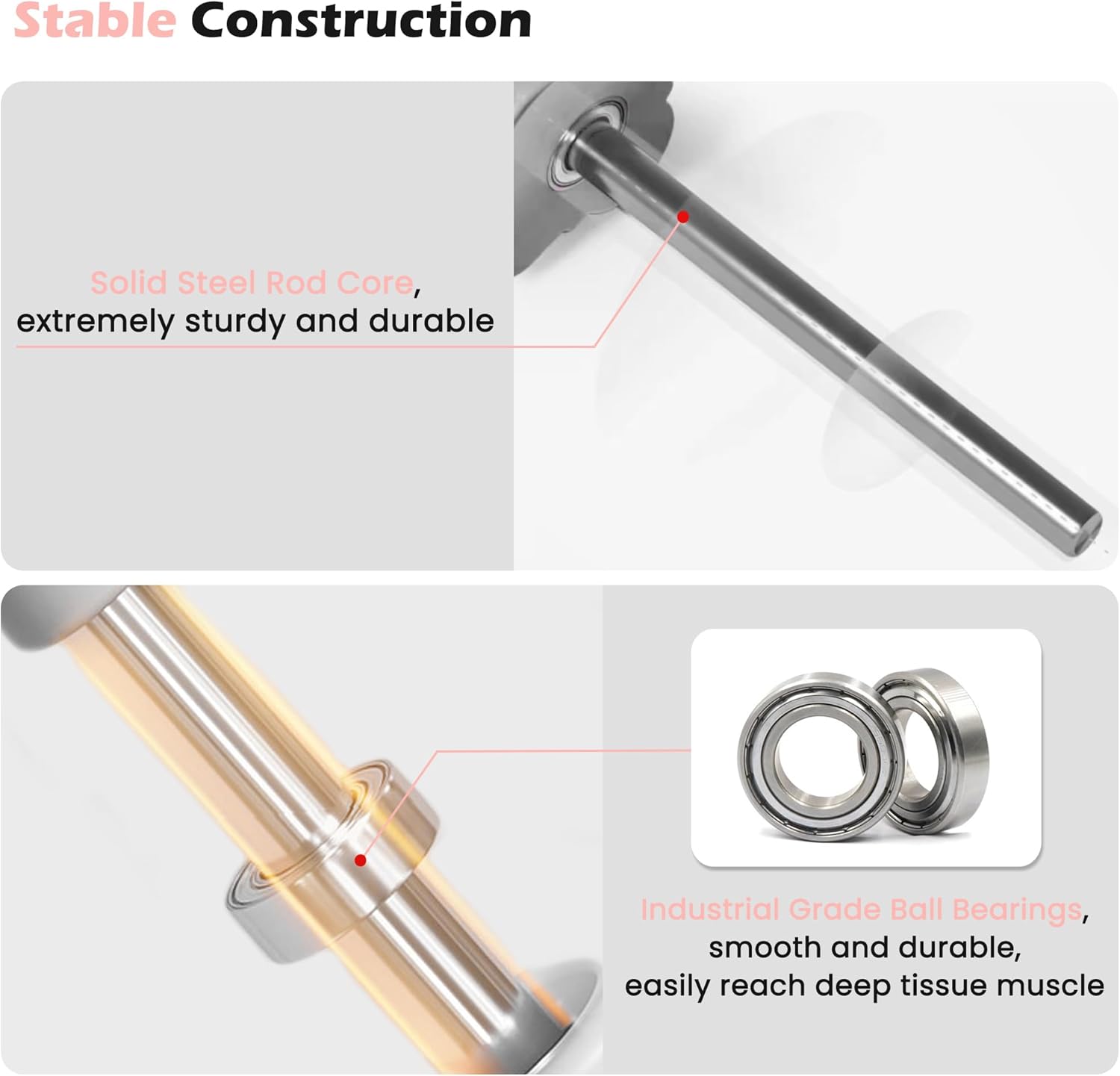 - Premium Material: KITWILD muscle roller is made of high-quality natural rubber, providing the perfect balance of flexibility and firmness. Industrial-grade ball bearings are smooth and durable and easily reach deep tissue muscle. Solid steel rod core, extremely sturdy and durable