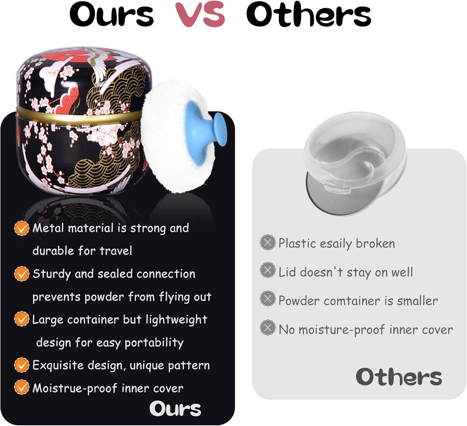 WEMEGA Body Powder Case with Powder Puff Powder Container Tea Box for Baby and Women Powder Puff and Powder Case for Travel (Black Crane)