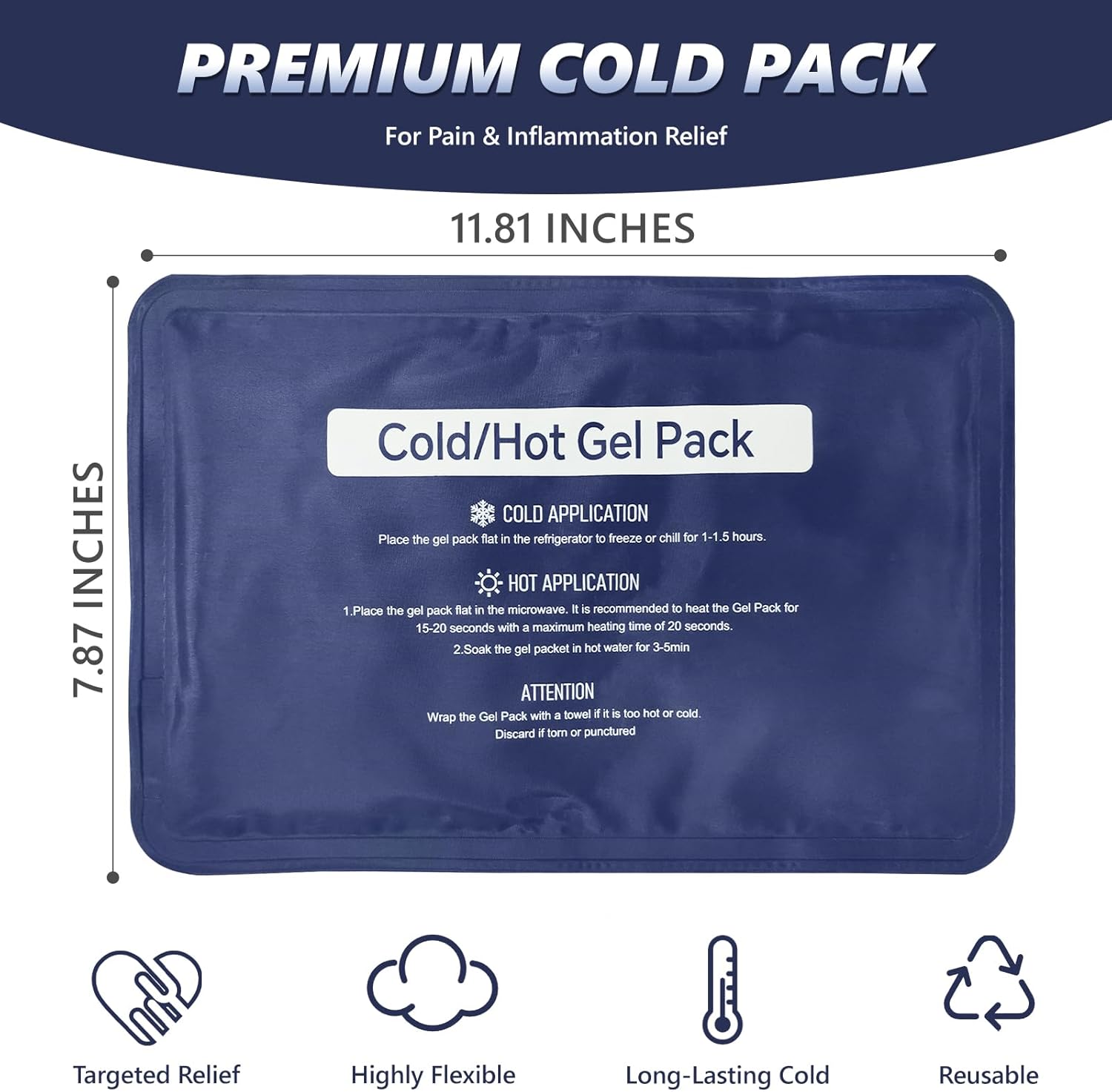 - Long-Lasting Cold Retention: Our high-density gel ice pack stays colder longer than regular ice packs, delivering extended soothing relief. The reusable cold pack maintains optimal therapeutic temperature while remaining flexible - excellent for muscle recovery or joint pain relief session after session
