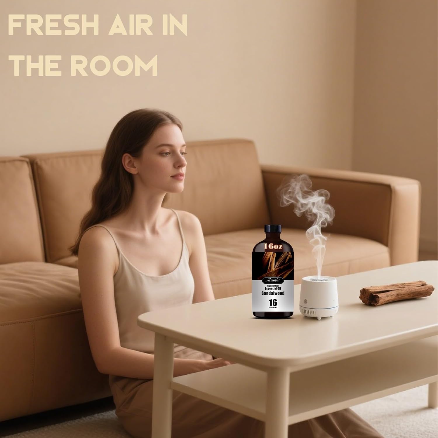 Sandalwood Fragrance Oil-Sandalwood Essential Oil 16.33oz (490ml)-100% Pure Natural Scent for Diffusers, Candles, Soap Making & Aromatherapy-Relaxing Home & Gift Essential Oil for Bath, Massage