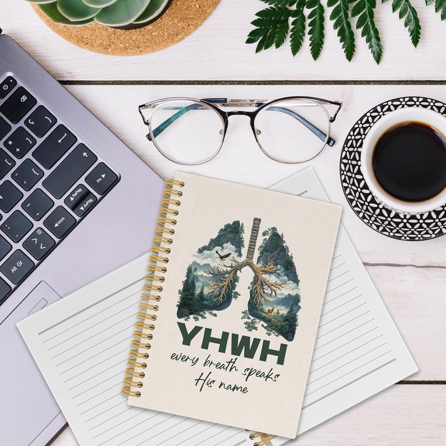 YHWH Christian Spiral Notebook, YHWH Lungs Bible Journaling Notebooks for Note Taking, Religious Scripture Hardcover Journals for Women Men 160 Pages 5.5 x 8.3 Inch, Christian Gifts for Women